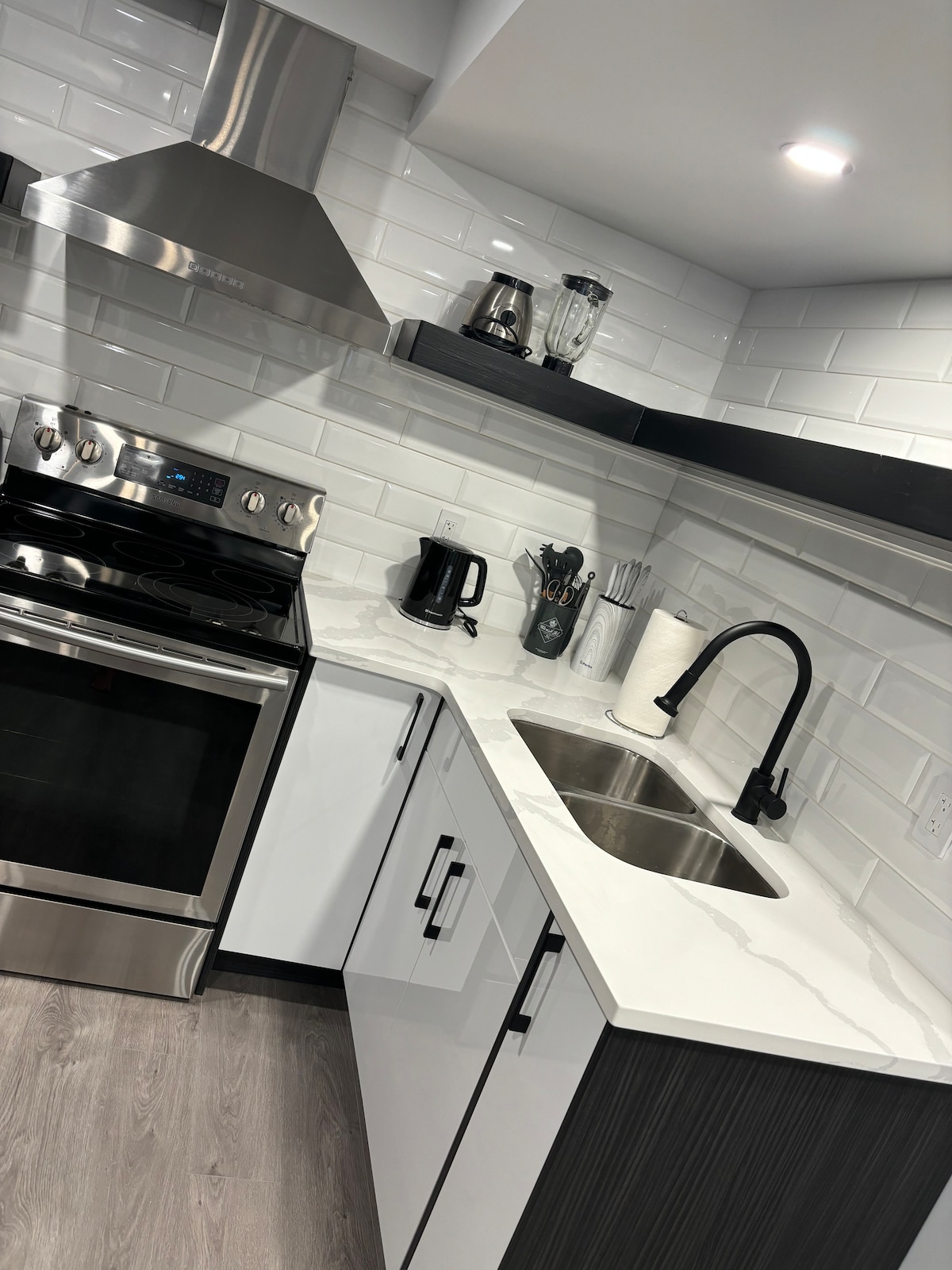 Bienvenido a nuestra lujosa suite con jardín con jacuzzi privado al aire libre, ¡perfecta para relajarse! Situada en el centro de Kitchener, está a pocos pasos de cafeterías, panaderías, restaurantes y del mercado de agricultores de fin de semana. Esta suite de 2 dormitorios y 2 baños incluye una cocina totalmente equipada, lavadora/secadora y un impresionante suelo nuevo. Con acceso rápido a las autopistas, las líneas de tránsito a colegios y universidades y el sendero Iron Horse, es el espacio ideal para familias, trabajadores y estudiantes. ¡El estacionamiento también está incluido!
