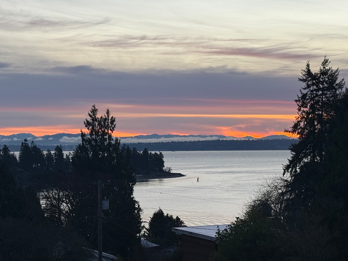 Casa remodelada con vistas espectaculares a las montañas Olímpicas y al mar de Salish. Disfrutarás de preciosas cubiertas, sauna al aire libre y jardín de lavandas. Excelente ubicación céntrica a solo 9 minutos del ferry de Seattle, a 2 minutos del Lions Park con embarcadero. Cerca del encanto artístico de Manette y de todas las modernas tiendas de Silverdale. Gran punto de partida para explorar la península olímpica: parques nacionales, Hood Canal, montañas, playas, con notable senderismo, paseos en barco y comida del noroeste del Pacífico.