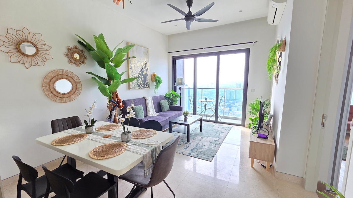 Por qué alojarse en la suite junior The Palm en Lucentia Residence - Las vistas de Kuala Lumpur. - Hermosamente decorada con un espíritu divertido. - Ubicación céntrica. - Cerca del transporte público. - Wifi rápido. - TV con Netflix, Apple TV y Prime Video. - 2 preciosas piscinas - Gimnasio, mesa de billar, zonas de barbacoa, piano. - Administrador superanfitrión. - Aparcamiento en garaje. - Recomendado para 2, máximo 3 personas. - El centro comercial LaLa Port y la calle de entretenimiento están unidos. - Supermercado, farmacia y muchos restaurantes están adjuntos. - Cine GSC al lado.
