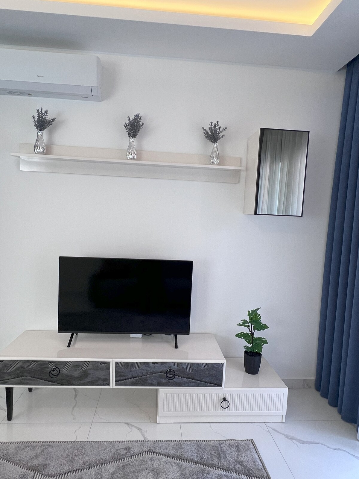 Apartamento 1+1 completamente nuevo en el complejo de nueva construcción Harmony 2 Residence con piscina, gimnasio, zona de barbacoa, sauna, baño turco, videovigilancia. La casa se construyó en 2024 y está a solo 100 metros del mar. Tiendas, restaurantes, centro comercial, mercado, están a pocos pasos.