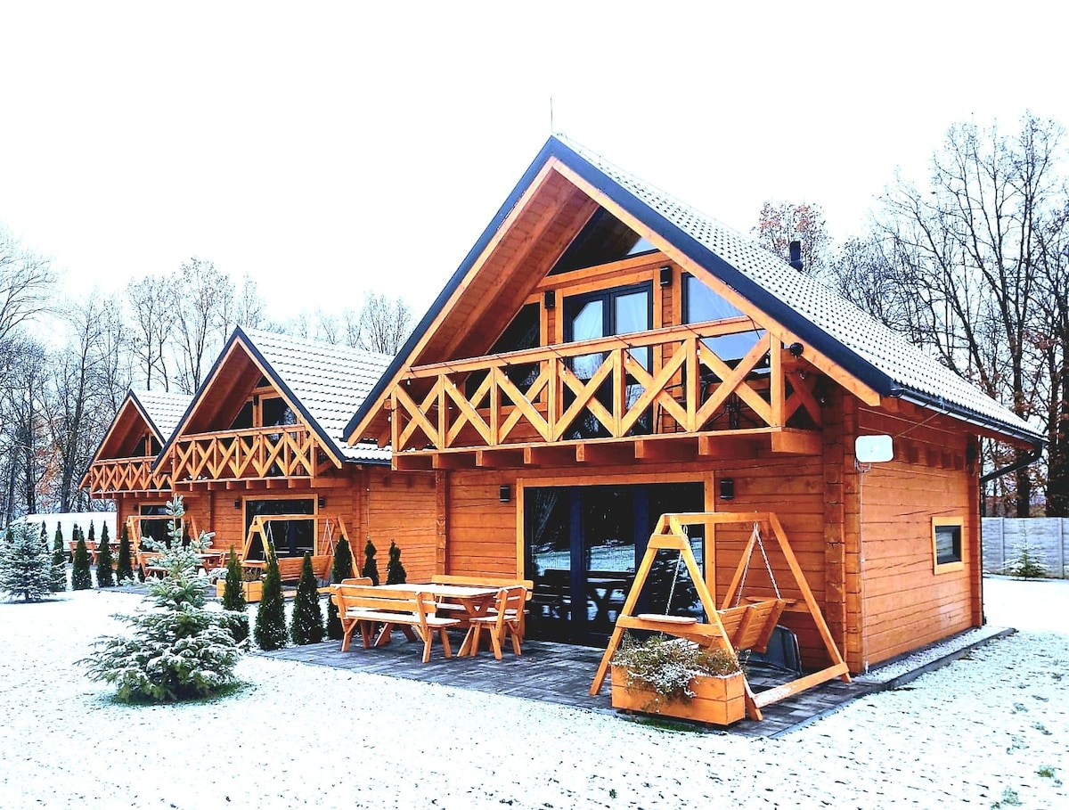 Casas de campo de estilo escandinavo abiertas todo el año. La primera, la más pequeña, "Kurdybanek", tiene capacidad para 4 personas (dormitorio con cama de matrimonio y sofá en el salón). La más grande, "Dziewanna", es una casa de campo para seis personas, con 2 dormitorios (cama de matrimonio y litera) y un sofá cama en el salón. Tienes a tu disposición innumerables hectáreas de tierra para pasear, multitud de atracciones turísticas a 40 km y, sobre todo, la madre naturaleza, el silencio (sin contar los conciertos de cigarras) y la tranquilidad, como corresponde al Fin del Mundo :) ¡Hasta pronto!