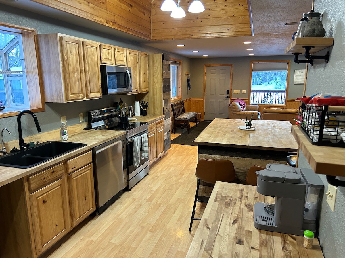 Sé nuestro huésped en esta casa unifamiliar ubicada en su propio terreno de un acre. La gasolinera está a 2 minutos en coche y hay una tienda de comestibles completa a 5 minutos. Esta casa luminosa y espaciosa es el espacio perfecto para anclar tu aventura en Alaska. El espacio: 3 dormitorios (con cama king, queen y literas), un baño grande con lavandería, sala de estar/cocina abierta con 2 terrazas y un pozo para encender el fuego. Ubicación céntrica junto a Clapp St, acceso tanto a KGB como a Parks Hwy- 45 minutos a Anchorage/Talkeetna, 15/20 minutos a Palmer