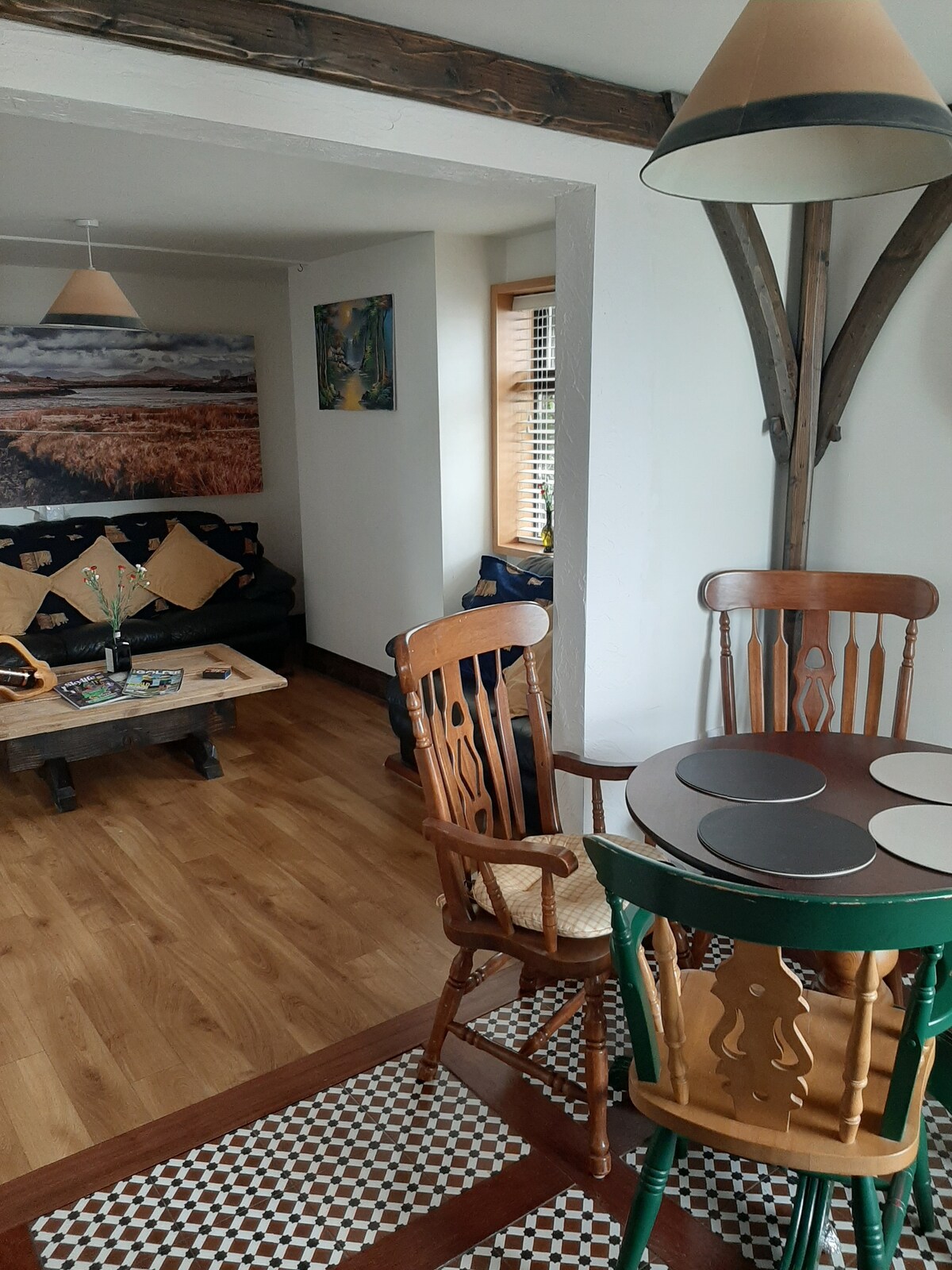 Relájate en un espacio acogedor rodeado de la belleza de la naturaleza. Observa el cambio de luz en las colinas desde el cómodo sofá, o toma un bastón y ve de excursión. Camina por el carril hasta el pintoresco lago (¡algunas almas resistentes podrían atreverse a darse un chapuzón rápido!). Recarga energías en una cama superking vestida con ropa de cama de calidad y revive en la ducha con efecto de lluvia tropical. La cocina pequeña tiene todo lo necesario para preparar comidas sencillas, y tu patio privado está completamente amueblado para comer al aire libre.
