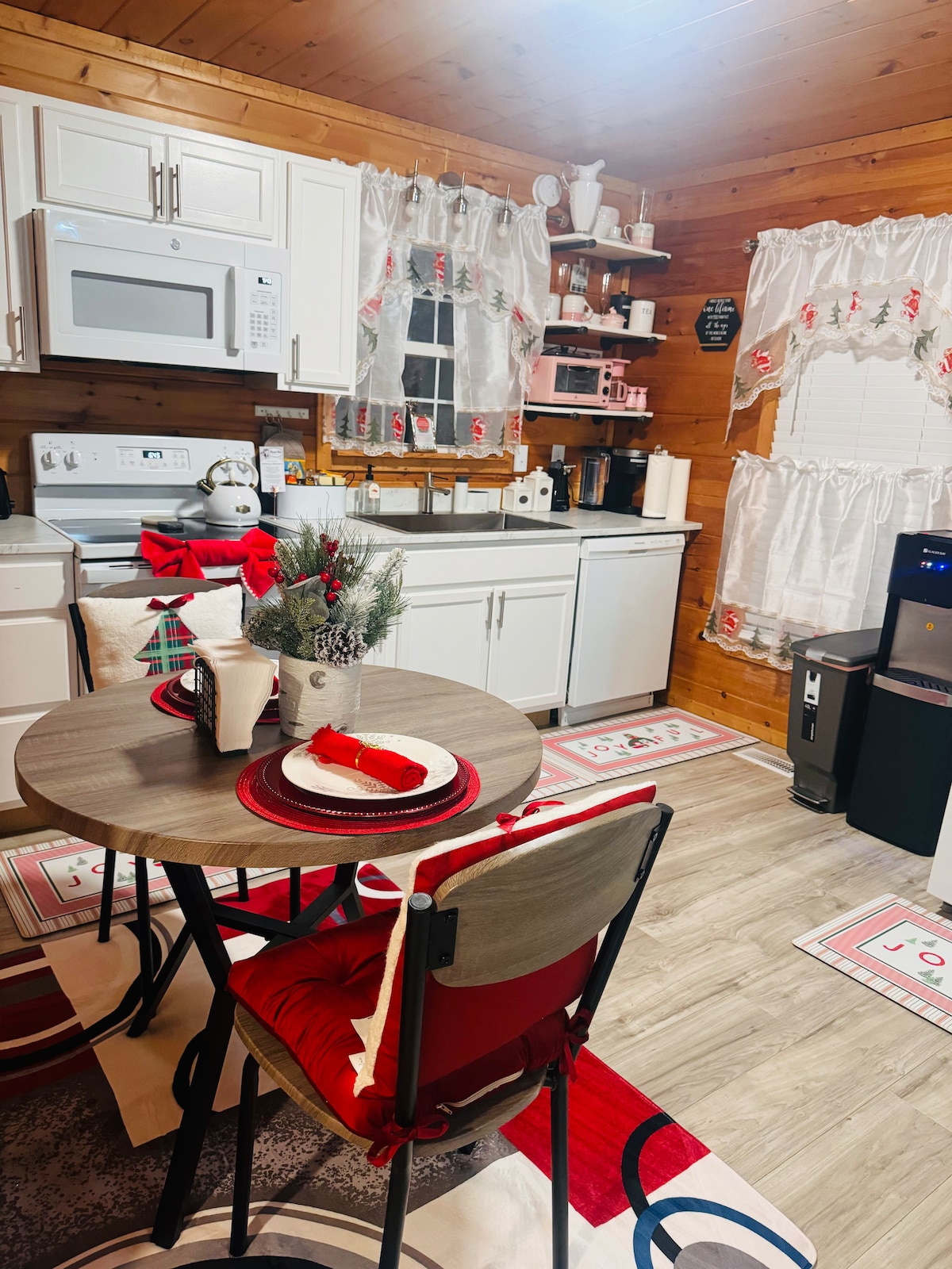 Construida en 2017, esta casa de estilo artesanal tiene todos los muebles nuevos, incluidos electrodomésticos de cocina de primera línea, camas tamaño king y queen, cama individual, cama para niños pequeños, PacknPlay para bebés, dos colchones de suelo tamaño individual, un gran sofá modular en la sala de televisión, un sofá de cuero con sillones eléctricos reclinables en el invernadero y una gran mesa de comedor construida por los Amish. Amplio patio y arroyo. Paisajismo recién añadido con un estanque de peces rodeado de comederos para pájaros. Aparca en el garaje adjunto.