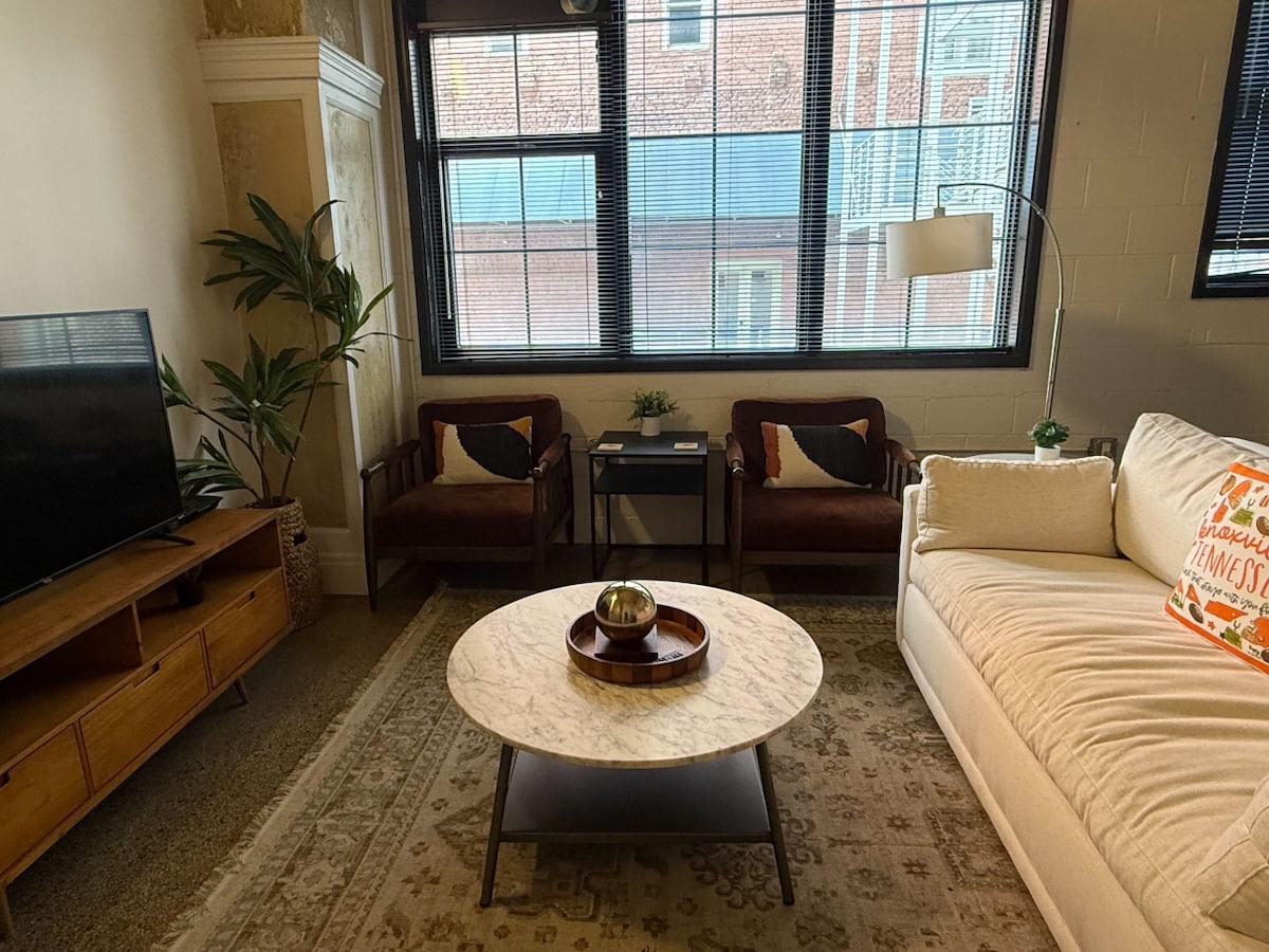 ¡Este loft en la planta baja de Knoxville está convenientemente ubicado en el corazón del centro de la ciudad! El loft está a poca distancia a pie a pie de la mejor vida nocturna, restaurantes, eventos deportivos de la Universidad de Tennessee, salas de conciertos y mucho más. Este espacioso loft tiene capacidad para 4 huéspedes y también incluye lavadora y secadora. Grandes ventanas con iluminación natural. Algunos de nuestros restaurantes favoritos se encuentran directamente fuera del loft, y Market Square está a solo 5 minutos.