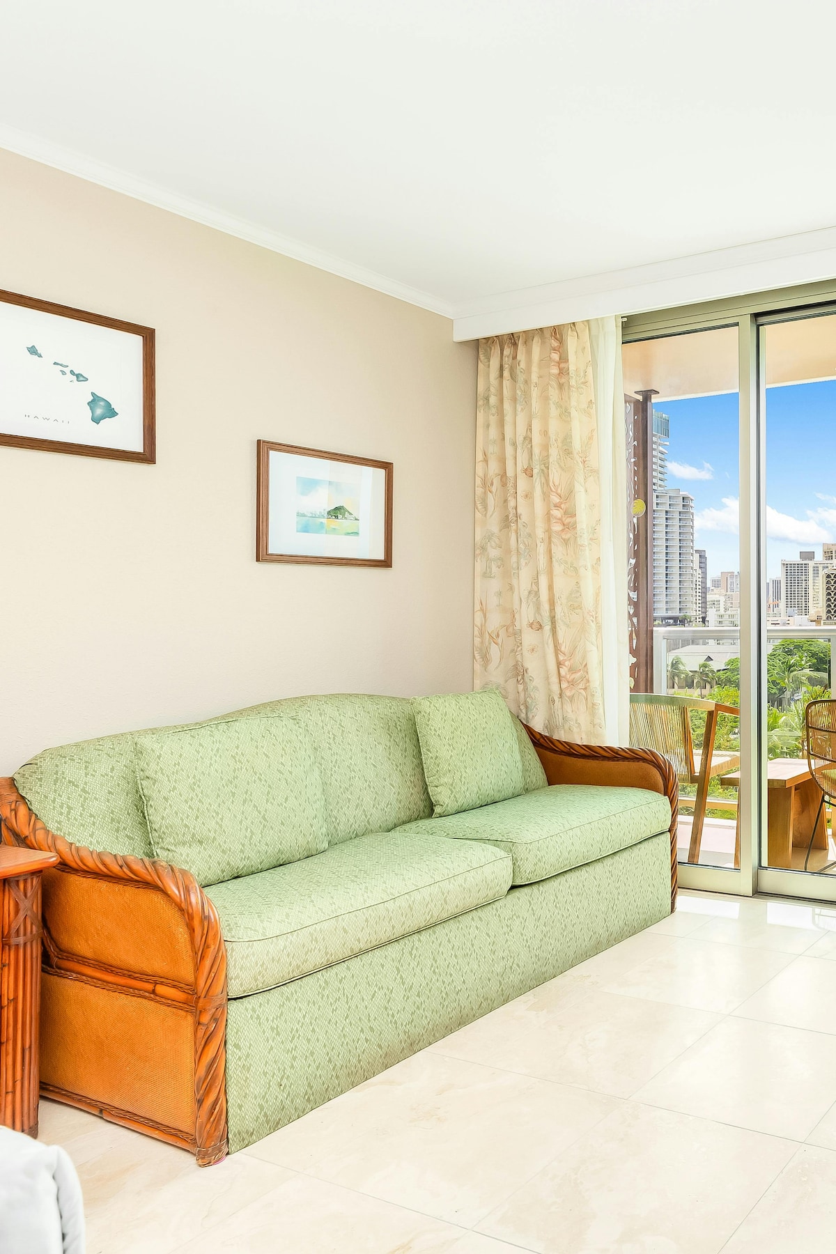 Aloha! Welcome to our spacious studio in Aqua Palms Waikiki Hotel. This rare corner unit sleeps up to 4 guests with a queen bed and sofa bed. Enjoy walking distance to Ala Moana Beach Park, Waikiki Beach, and Ala Moana Shopping Center. Includes cable TV, free Wi-Fi, kitchenette, microwave, and fridge. Steps from IHOP, ABC Store, and Hilton Hawaiian Village with Friday night fireworks. Perfect location to explore, relax, and enjoy the best of Waikiki!