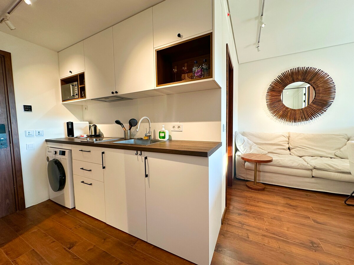 Beachfront studio in prestigious Tsikhisdziri, just 30 minutes from Batumi and a few minutes from Kobuleti. Enjoy direct sea and pool views from your triple size balcony. Ideal for couples or families seeking peace, fresh air, and crystal-clear water. Located in the Bamboo Beach complex, steps from the shore — a calm retreat with easy access to nearby attractions.