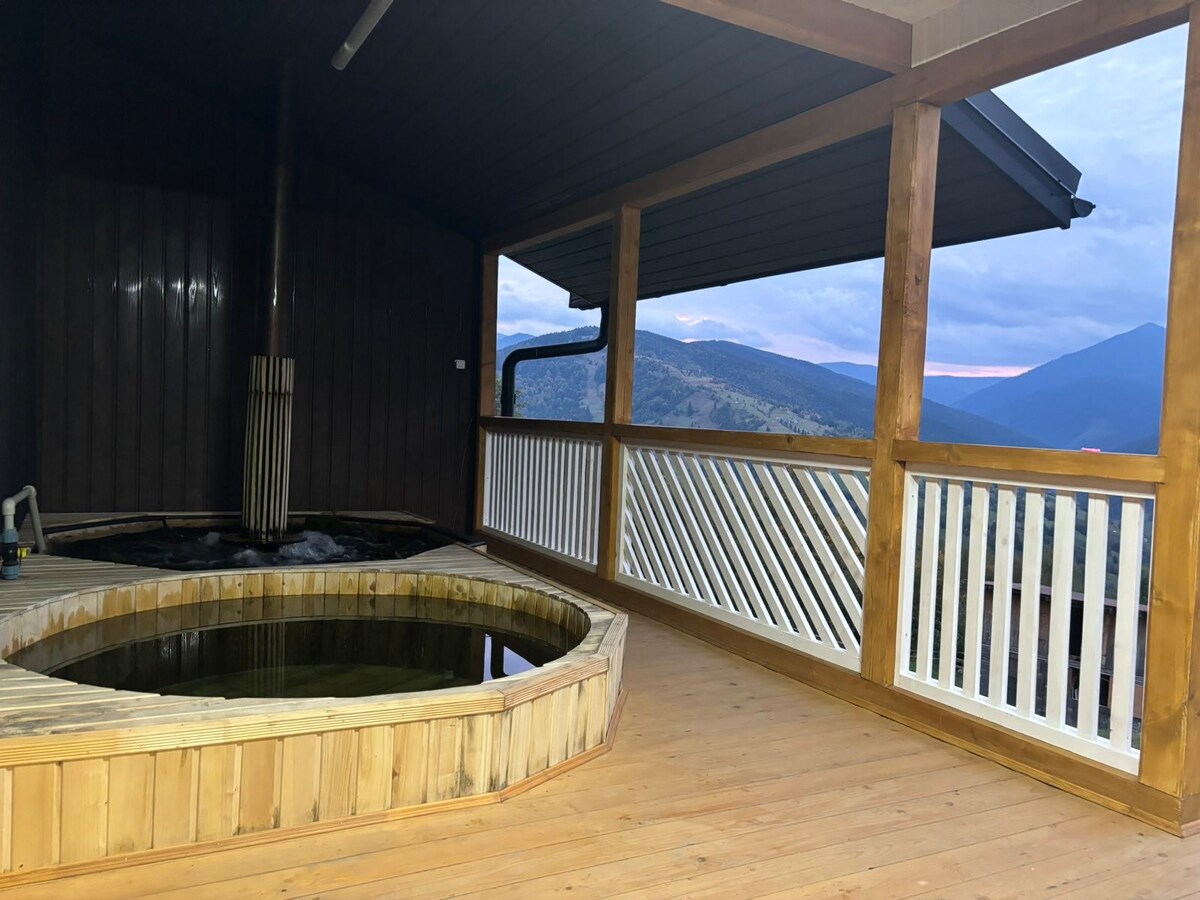 Cómoda casa de madera en los Cárpatos, cerca de la estación de esquí Bukovel. Una cabaña independiente de corte manual, una amplia terraza con excelentes vistas a las cumbres de las montañas Hoverla, Petros, Blyznytsi... Una bañera de hidromasaje al aire libre en nuestra terraza es el mejor reemplazo para una sauna. Chimenea de leña, suelo radiante en los baños, cocina completa con electrodomésticos y vajilla. En la calle hay una parrilla para cocinar al fuego. Y lo más importante: un ambiente inolvidable, soledad, belleza y comodidad.