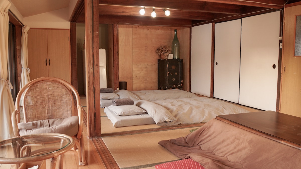 Esta es una posada privada ubicada en la parte centro-occidental de la prefectura de Kochi, limitada a un grupo por día.El precio básico es para 4 adultos, y hasta 2 niños en edad de escuela primaria son gratis en la premisa de que duermen con sus padres.Este lugar es perfecto para familias, parejas y amigos. Renovado una antigua casa construida hace 40 años, dejando ventanas y vigas antiguas intactas.Es del tamaño adecuado para 2LDK, por lo que puedes relajarte como en casa.Relájate en un solárium con vistas al baño de ciprés y al campo.También se proporcionan servicios sin aditivos y ecológicos. A unos 40 minutos en coche del aeropuerto de Kochi.Buen acceso a pocos pasos de la estación más cercana.También tiene un buen acceso al arroyo milagroso y al río Niyodo.