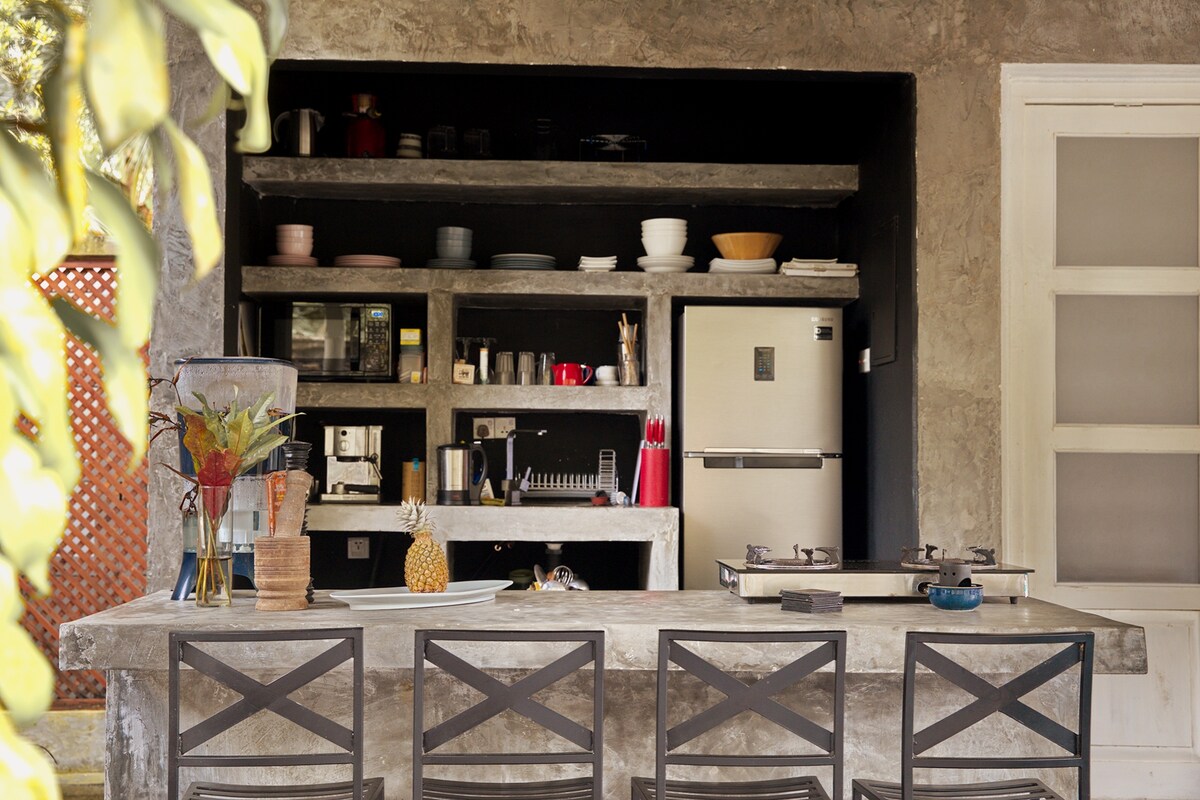 Arthouse Ahangama is a boutique three-bedroom villa in the serene jungle of Ahangama, Sri Lanka yet only 5 minutes from Kabalana beach An artists local residence reborn as a hospitality experience- this curated antique-style villa blends art and genuine conscious travel with modern comforts. Ideal for groups of friends or families seeking a peaceful South Coast villa. A cozy retreat surrounded by lush gardens and tropical landscapes, just minutes from Ahangama’s beaches and cafés