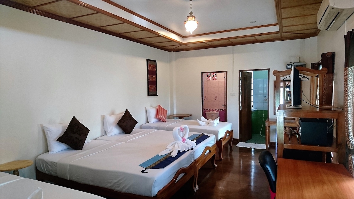 Nuestra habitación es una suite con un área interior de 50 metros cuadrados. Se divide en una sala de estar y una habitación. Proporciona un baño separado y 24 horas de agua caliente. Todas las familias tienen un jardín independiente. La televisión satelital en Asia y Europa puede proporcionar más de 20 canales Estamos preocupados por la calidad de vida. Todos los muebles utilizan madera de teca del norte de Tailandia. Prestamos atención al buen sueño, especialmente seleccionamos el colchón de alto nivel Sealy de los Estados Unidos.
