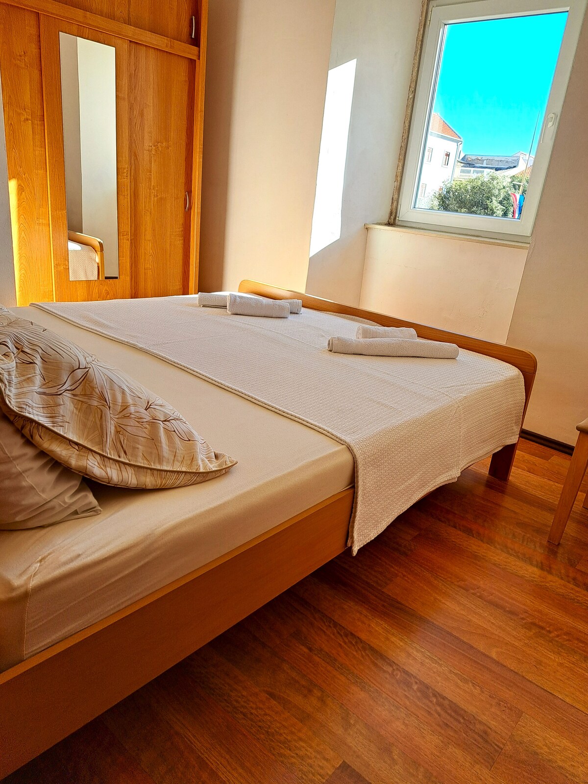 El departamento sin balcón está ubicado en el segundo piso de una nueva casa elegante. Está a solo 50 m del mar. La posición es ideal para nadar, caminar por la playa. El departamento está totalmente equipado con un baño grande y un dormitorio, en la cocina más pequeña hay todo lo necesario para preparar la comida. Está hecho para una pareja. Para mantenerte libre de preocupaciones cuando llegues tarde, el apartamento tiene agua para refrescarse, cápsulas de café para la primera mañana y un gel de ducha desechable en el baño.
