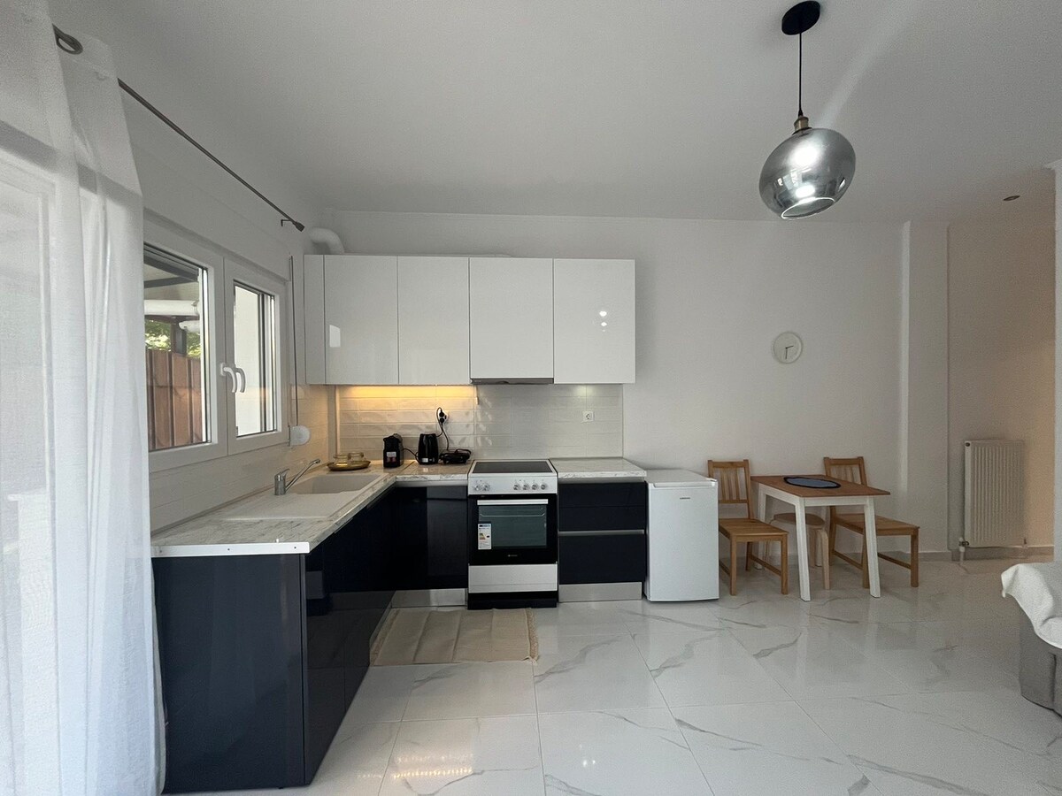 Tranquilo apartamento de 2 dormitorios con un precioso jardín y un sofá cama para un máximo de 2 personas. Una casa totalmente renovada (2024) y completamente amueblada en el pueblo de Krithia, Tesalónica. Con una ubicación ideal en la plaza central del pueblo de Krithia, a pocos pasos de un supermercado, una farmacia y el médico general local. A solo 10 minutos en auto (9 km) del campamento militar Prokopidis cerca de Assiros, ideal para personal militar.