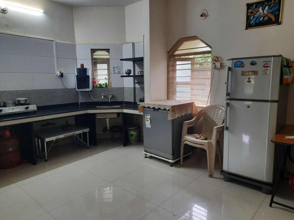 अतिथि देवो भव está en el corazón de todo lo que hacemos Ubicada en una calle tranquila y rodeada de vegetación, esta casa ofrece un refugio apacible que combina comodidad y tranquilidad, donde tus mañanas comienzan con el suave canto de los pájaros y un desayuno recién servido, que está incluido en tu estadía. Nos encargamos del servicio de limpieza diario y del lavado de la vajilla, incluso en las estadías de varios días, para garantizar una experiencia cómoda y sin complicaciones. Se ofrecen comidas Kolhapuri caseras por un costo adicional.