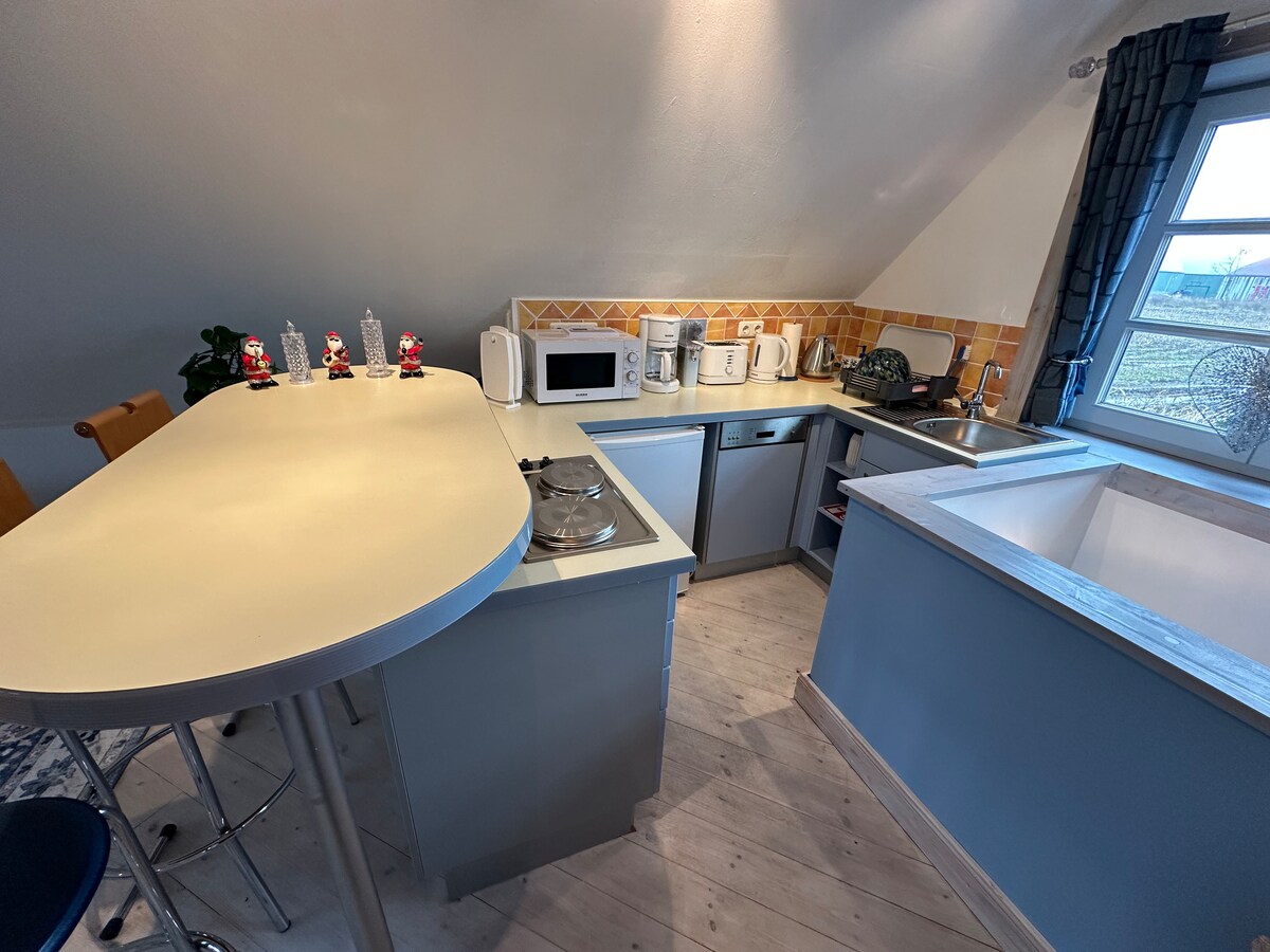 Die gemütliche 70qm große Wohnung befindet sich im Obergeschoß in unserem Einfamilien-Haus mit eigenem Aufgang u. Terrasse. Das Schlafzimmer hat ein 160cm breites Doppelbett m. Nachtschränke, Schrank und Fernseher. Das Wohnzimmer ist mit Eck-Couch, ein 120cm Bett, Schrank, Fernseher versehen. Vom Wohnzimmer geht eine Raumspartreppe (Achtung ohne Geländer!) in den Spitzboden. Dort können 3 weitere Personen übernachten. Die Küche ist für 6 Personen voll ausgestattet (mit Spülmaschine).