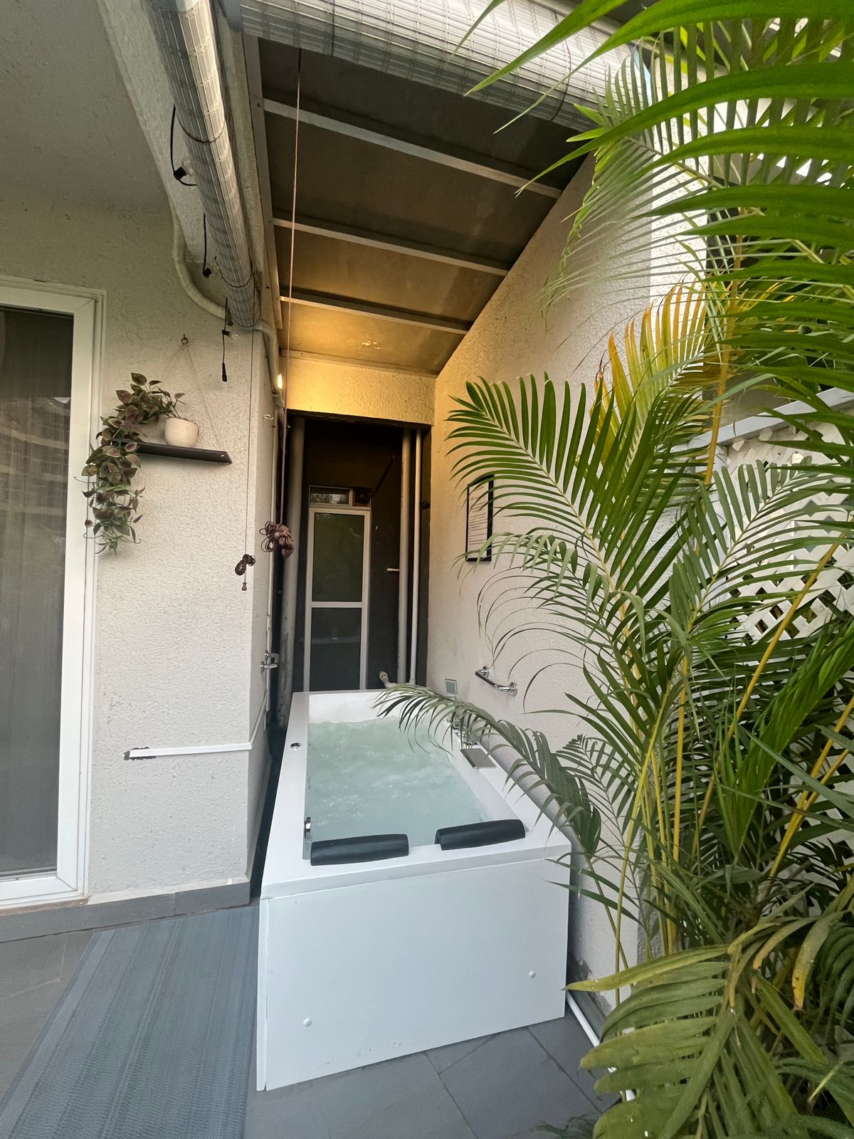 Estudio de lujo de estilo boho con jacuzzi y jardín. Una escapada tranquila. Totalmente equipado con wifi, cine en casa JBL 2.1, sistema de música BT y TV LED Full HD. Un elegante baño con artículos de aseo. Despensa con suministros de té/café, agua RO, microondas, placa de inducción, nevera y tostadora s/w. Jardín vallado para niños. Cena en el jardín con buen tiempo. El jacuzzi tiene agua caliente que se puede usar en cualquier momento. Servicios comunes en el lugar como piscina, sala de juegos, gimnasio, miniteatro, ciclismo y restaurante.