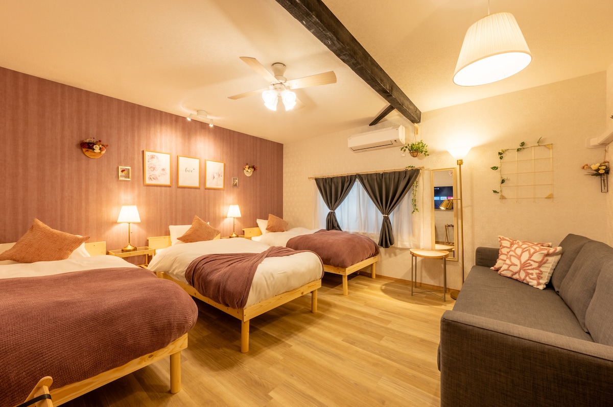 (Espacio vacío) Espacio moderno japonés rodeado de arte japonés de sombrillas / 3 dormitorios / 6 camas / 3 baños / 1 ducha / 1 baño