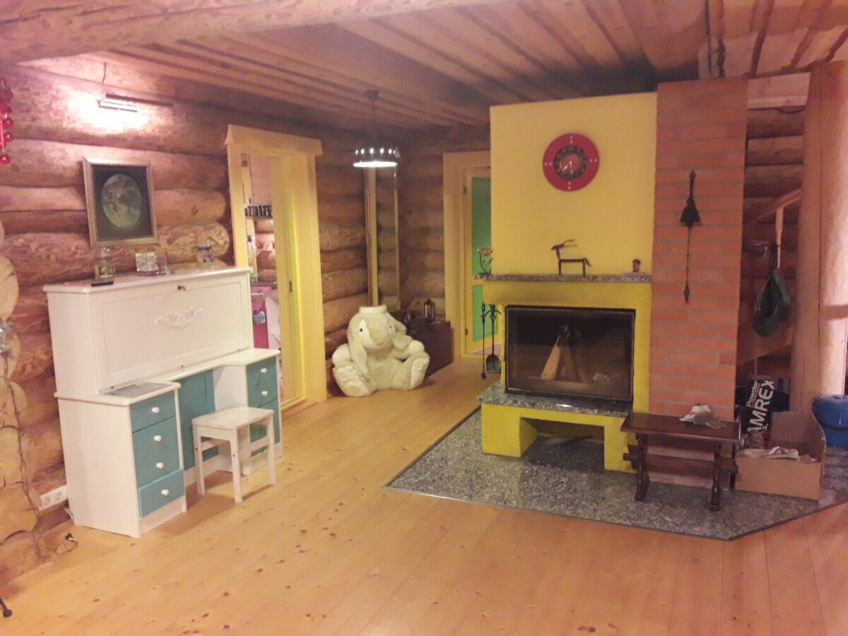 La cabaña privada y acogedora en el bosque con vistas al mar es para alguien que quiere descansar en medio de la naturaleza. El edificio es de planta abierta y está abierto en la segunda planta Duerme cómodamente 4 personas, también hay una opción para una cama supletoria y una cuna. Al aire libre hay una gran mesa de comedor y una sala de estar con cómodos muebles de salón con una fogata para asar a la parrilla o simplemente disfrutar de una hoguera.