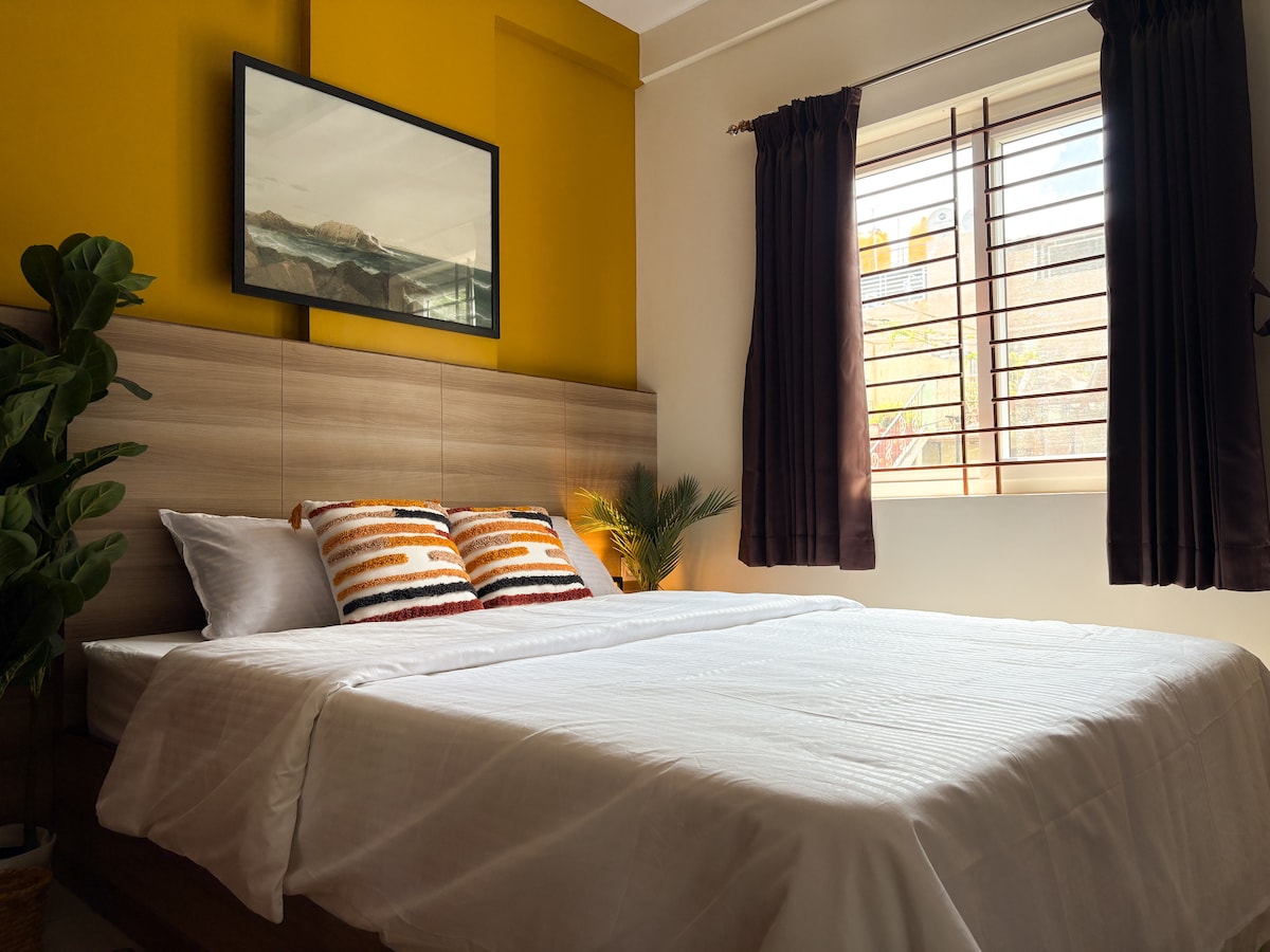 1BHK privado con balcón en Koramangala Disfruta de una vida de primera calidad en un 1BHK privado con balcón en la exclusiva Koramangala. Ideales para parejas, profesionales y viajeros de negocios, nuestras modernas unidades ofrecen Wi-Fi de alta velocidad, servicio de limpieza, una cocina totalmente equipada, acceso a un jardín común en la terraza, lavadoras y secadoras. Ubicado cerca de los mejores cafés, restaurantes y oficinas, este alojamiento tranquilo combina comodidad y conveniencia en uno de los vecindarios más vibrantes de Bangalore.