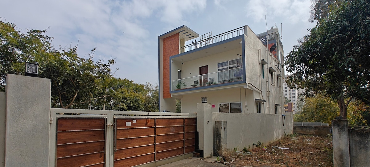 A premium duplex bungalow in Koramangala 4th Block—ideal for families, founders & long stays. Sunlit, peaceful, and packed with comfort. ✔ 2 spacious floors with private entry ✔ King beds | Attached bathrooms ✔ Fully equipped kitchen + essentials ✔ Smart TV | High-speed Wi-Fi ✔ Daily cleaning available ✔ Workstations + ample storage ✔ Lush balconies | Quiet, central location