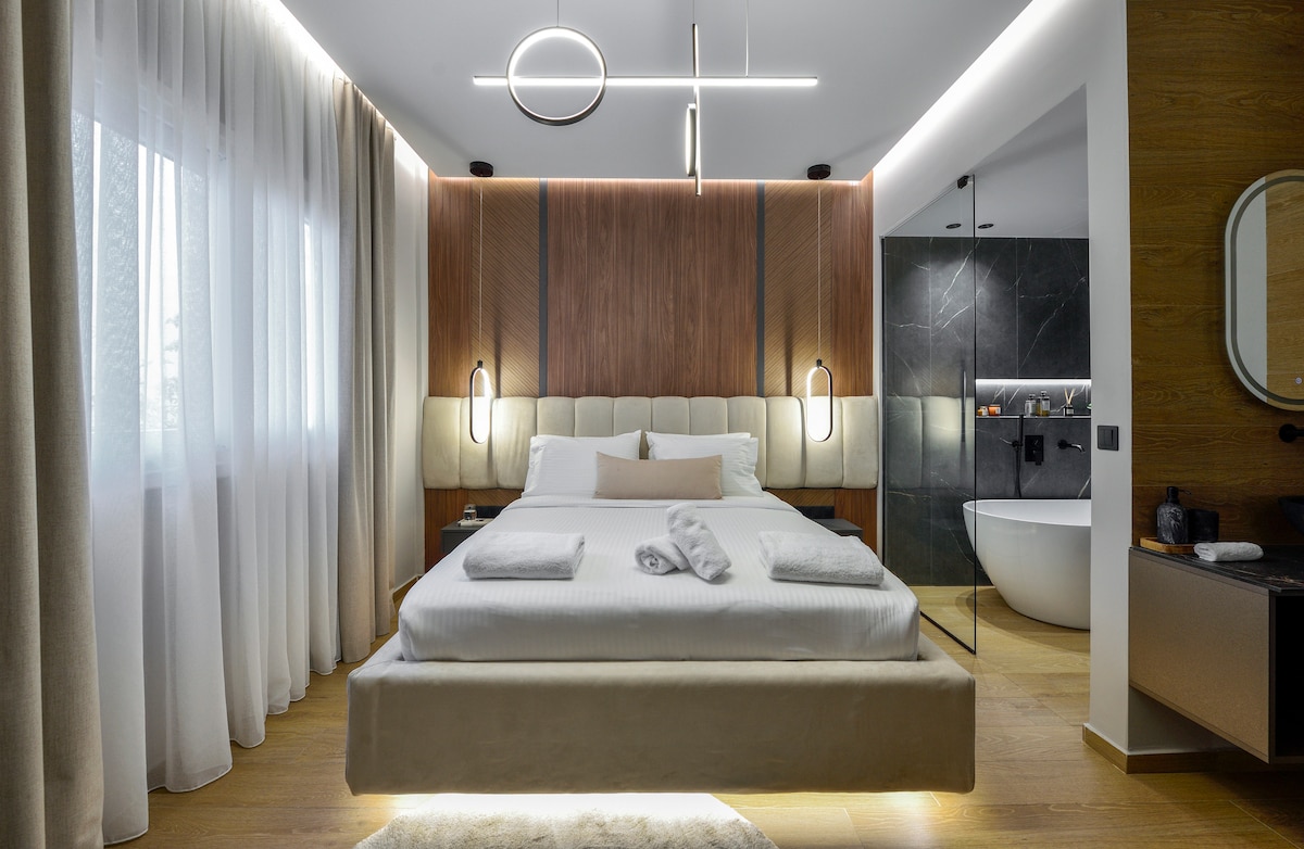 Disfruta de la ciudad desde ARRIBA en nuestra suite prémium en la azotea en el corazón de Salónica, ubicada cerca del vibrante barrio de Ladadika, a solo 5 minutos de la plaza Aristóteles. Disfruta de impresionantes vistas al mar y al paisaje urbano, con un encantador jacuzzi al aire libre y una cómoda sala de estar. En el interior, disfruta de la relajación con una lujosa experiencia en la bañera. Perfecto para una escapada romántica o un retiro de ocio.