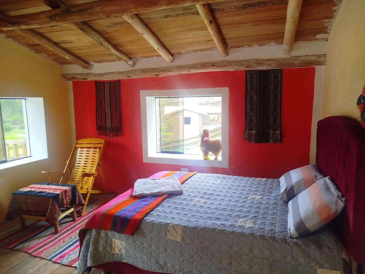 Este maravilloso alojamiento es ideal para viajes en pareja, en familia y/o Grupo de amigos . Con vista y al Rio Vilcanota, rodeado de inmensas Montañas verdes (Apus), donde se respira paz y tranquilidad. Cerca a la Ciudad de Cusco (45 min) ,al Santuario del Señor de Huanca (5 min), a 2min del Templo La Pacha ; al Pueblo y a la Ruinas de Pisac (10 min.) , Ruinas de Ollantaytambo ( 1.15 hora ) donde se encuentra la Estación de tren que nos lleva a una de las Maravillas del mundo “ Machu Picchu