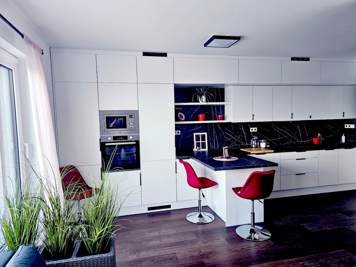 ¿Quieres disfrutar de la belleza de Praga y relajarte por la noche? En BetaHome, encontrarás un apartamento moderno totalmente equipado con su propio jardín, garaje y muchos detalles inteligentes que harán que tu estancia sea más agradable para ti y tus hijos. Preparas café, enciendes tu programa favorito, los niños juegan y realmente te relajas. Arreglamos el apartamento para que nuestra propia familia se sintiera bien aquí. Y puedes experimentar la misma sensación aquí ahora, como en casa, pero sin las responsabilidades.