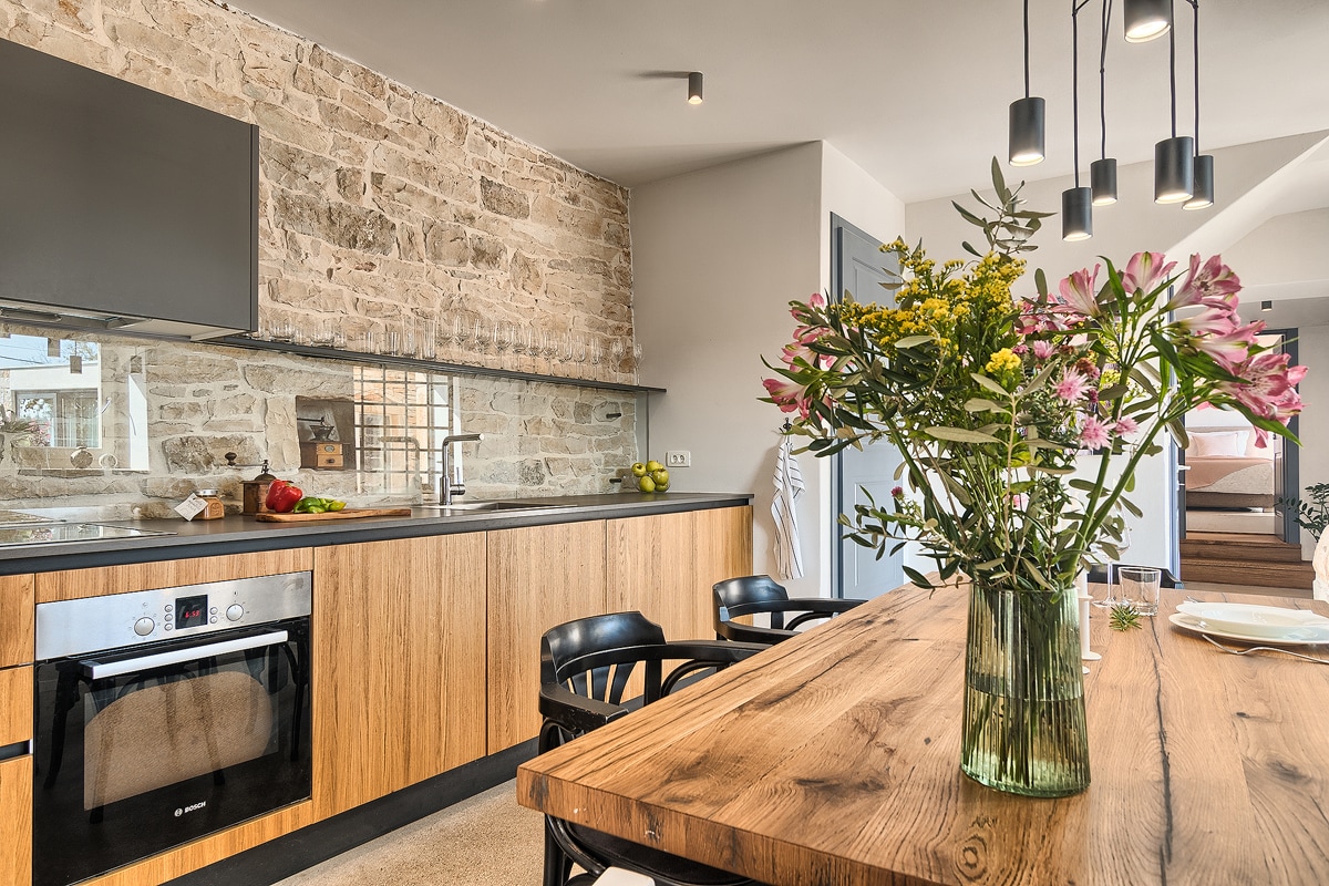 En el pintoresco pueblo de Majkusi, en Istria, a solo unos minutos en auto de Poreč, se encuentra Villa Valeria, una encantadora casa de vacaciones de piedra que combina a la perfección la arquitectura tradicional con el confort moderno. Esta villa istriana renovada irradia el auténtico espíritu de la región, con detalles de piedra conservados y cálidos detalles de madera que crean un ambiente acogedor para unas vacaciones familiares o una escapada relajante con amigos.