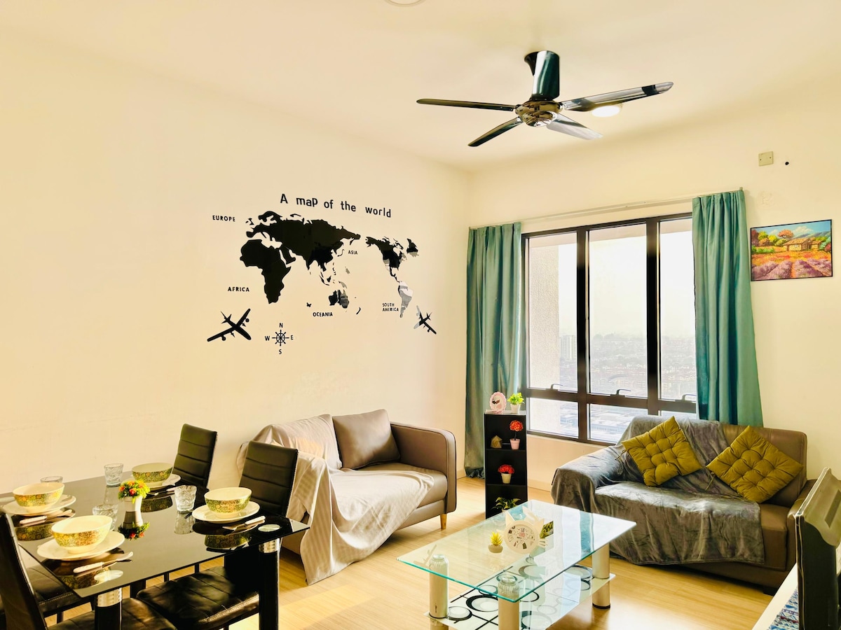 Disfruta de la comodidad y la comodidad en nuestro moderno apartamento de servicio, perfecto tanto para estancias cortas como prolongadas. Nuestra suite ofrece: Amplia sala de estar: Relájate en un espacio acogedor y bien amueblado con abundante luz natural. Cocina totalmente equipada: Prepará tus comidas favoritas con nuestras modernas instalaciones de cocina. Wifi de alta velocidad: Mantente conectado con Internet rápido y confiable. Ubicación privilegiada: Situado en el corazón de Shah Alam, con fácil acceso a atracciones locales y centros comerciales.