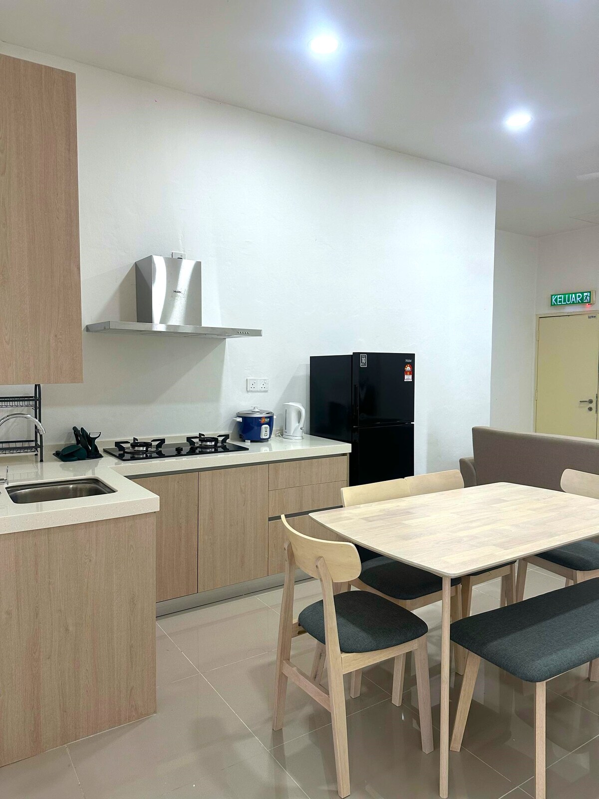 LP Chamber Homestay Kota Marudu ofrece un cómodo y totalmente equipado apartamento de 2 dormitorios para 4-8 huéspedes. El apartamento incluye dormitorios con aire acondicionado, ducha con calentador de agua, dos inodoros, lavadora, cocina totalmente equipada, TV inteligente, wifi gratuito, estacionamiento gratuito y acceso gratuito a un gimnasio. Estratégicamente ubicado, puedes caminar hasta 10 estrellas Cinema, 99 Speedmart, cafeterías, restaurantes y clínica. A solo nueve minutos en auto del Hospital KM, es ideal para los visitantes.