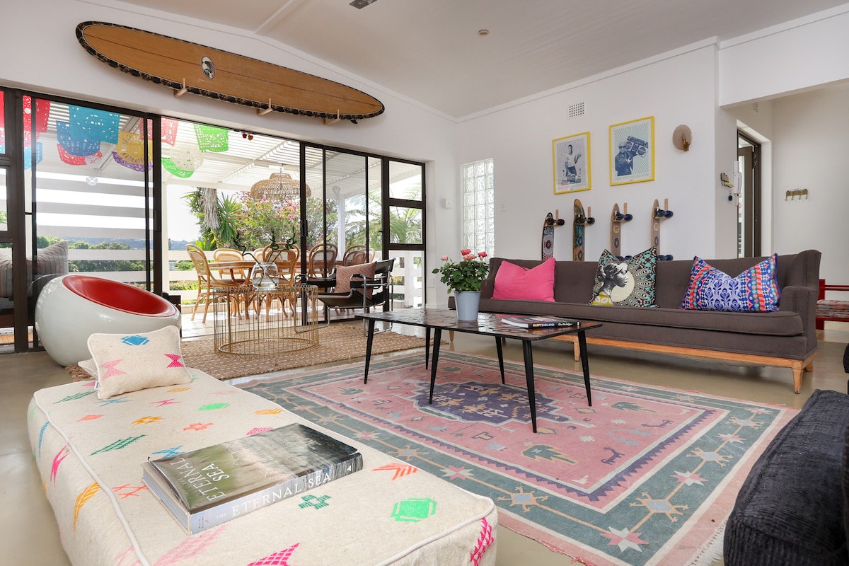 Plett's newest, funnest holiday rental in Seaside Longships, just 400m from the beach, is here! Surf, climb, and connect in a creative, comfy house for up to 8 people. The house has four bedrooms, 2 of them en-suite. A huge open living room and a fully equipped kitchen. Our beautiful indoor pool will have you swimming all year around - and our huge outdoor spaces are a mix of beautiful garden and comfy equipped decking. In the basement you'll find the gym, boxing bag and climbing board.