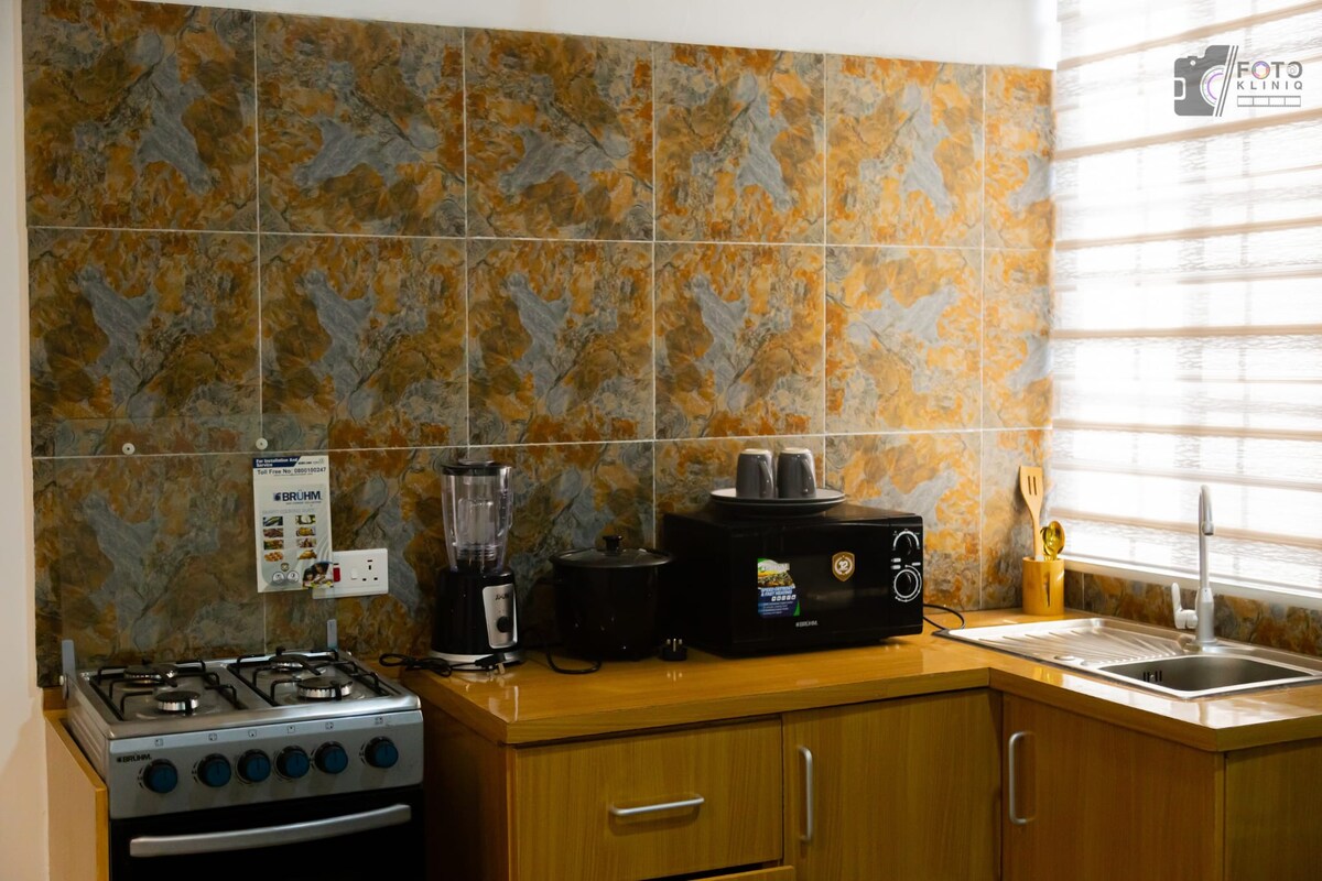 Welcome to our stunning two-bedroom apartment, designed to provide our guests with a modern and cosy retreat during their stay. With contemporary and stylish interior design, our apartment offers a peaceful and relaxing atmosphere that will make you feel right at home. With a well-equipped kitchen, air conditioning in each room, high-speed Wi-Fi, and an automated compound gate for easy access, our apartment provides everything you need for a comfortable and enjoyable stay in our city.