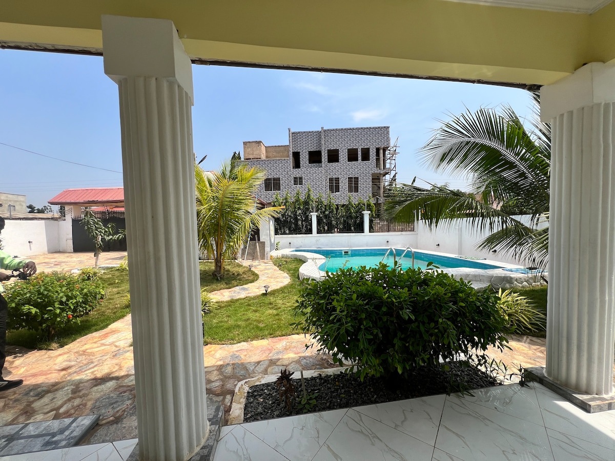 Villa privada de cuatro dormitorios con piscina en una comunidad segura en Tema West. Diseñado para familias y grupos, el alojamiento cuenta con dormitorios con baño privado con DSTV, una cocina totalmente equipada, estacionamiento seguro y uso exclusivo de la piscina y el área al aire libre. Ubicada en una zona residencial tranquila lejos del ruido de la ciudad, la villa ofrece comodidad, espacio y conveniencia.