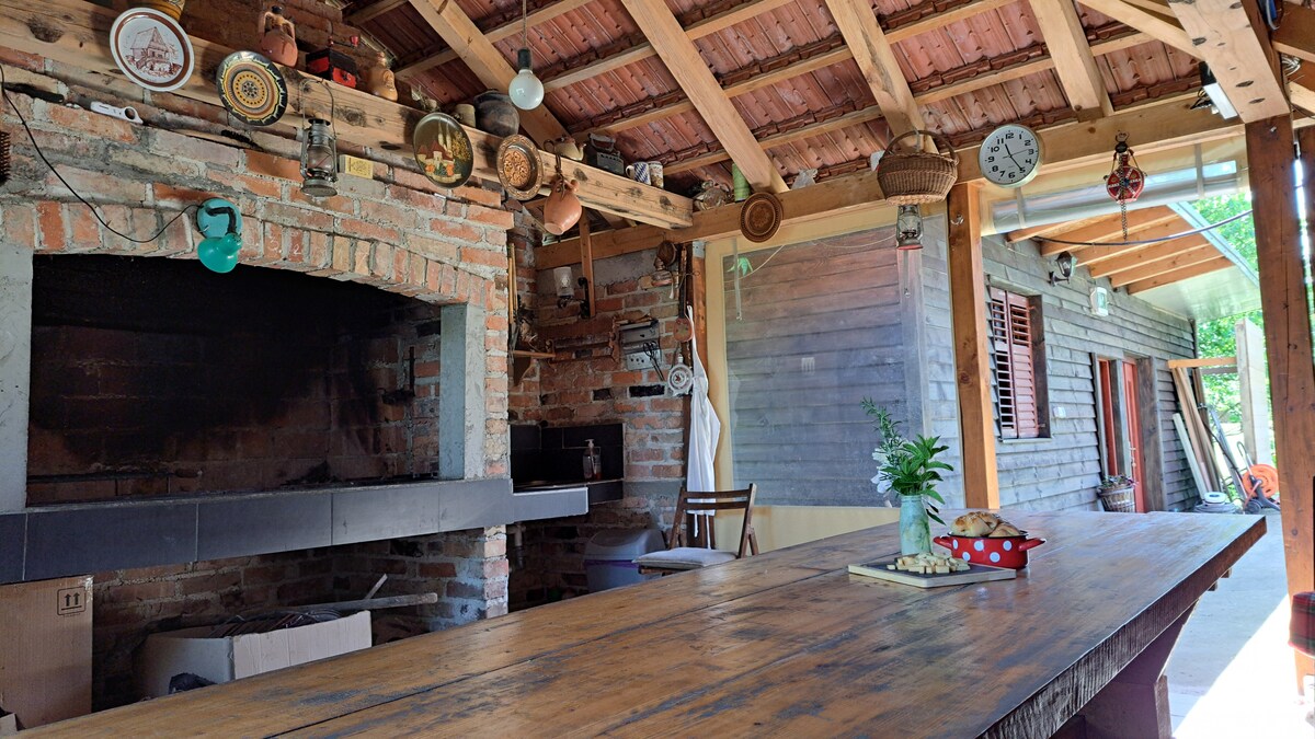 ¡Una casa de campo rodeada de vegetación con una orquesta permanente te espera! Se encuentra en el pueblo de Igrišće, cerca de Zagreb. Aquí encontrarás paz, tranquilidad, vegetación del bosque y el olor a hierba recién cortada. ¡La cabaña ofrece algo para todos, paz para la familia, romance por el amor! Una hermosa zona al aire libre con terrazas, barbacoa y en el prado puedes disfrutar de actividades deportivas. De junio a octubre, disfrutarás de una piscina privada con zona para tomar el sol, y durante todo el año te relajarás en una zona de bienestar privada.