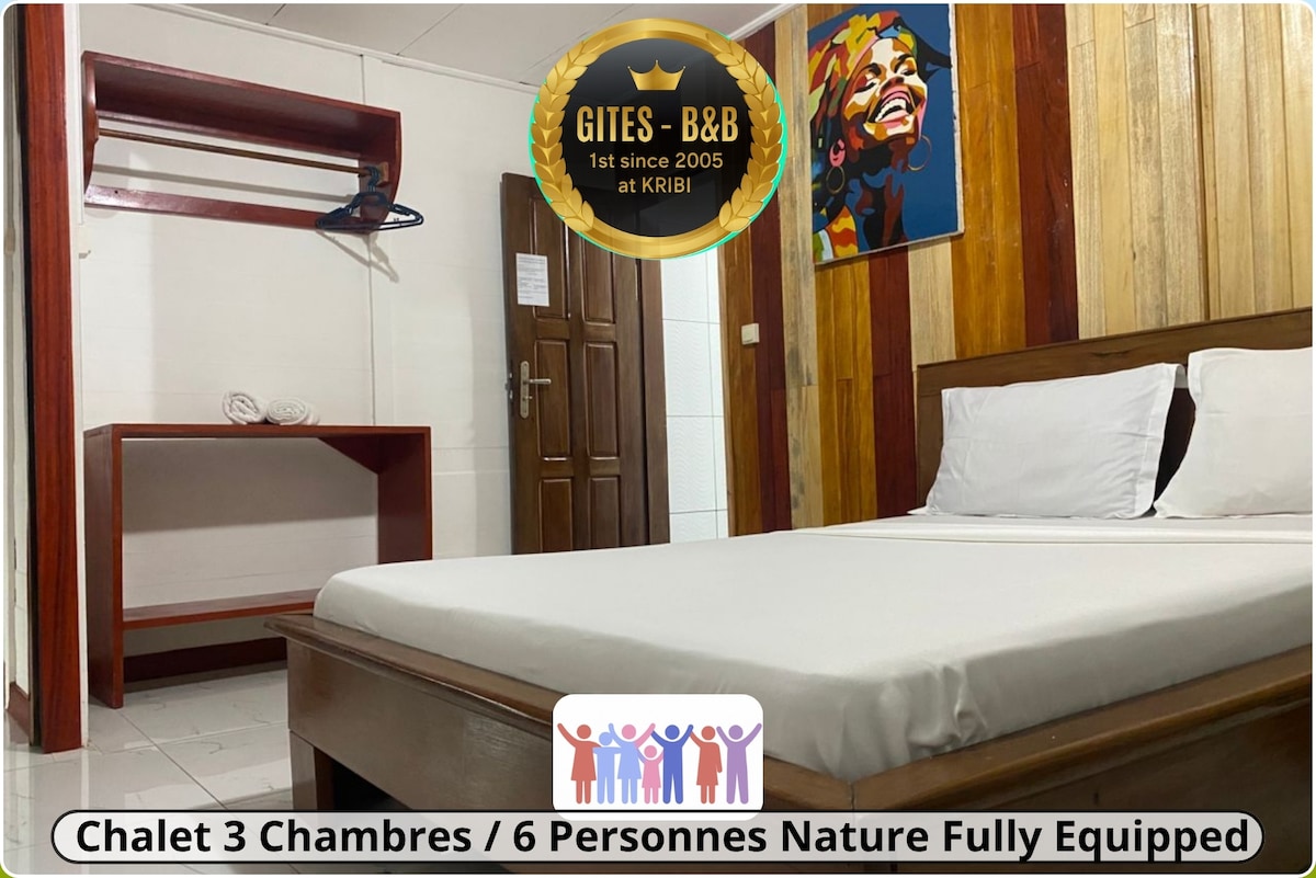 La Résidence Créolia es un remanso de paz y confort situado a 700 metros del mar, a 10 minutos del centro de Kribi, a 15 minutos del campo de golf de Kribi y a 20 minutos de las cataratas del Lobé. Se inauguró en julio de 2024. Este alojamiento de 3 habitaciones y 104 m² cuenta con una terraza panorámica de 31 m² con vistas al jardín, que dispone de una piscina elevada segura. La amplia sala de estar de 40 m2 cuenta con una sala de estar con TV y decodificador y un gran comedor. Cocina independiente moderna totalmente equipada. Cada habitación tiene 1 baño y 1 terraza privada.