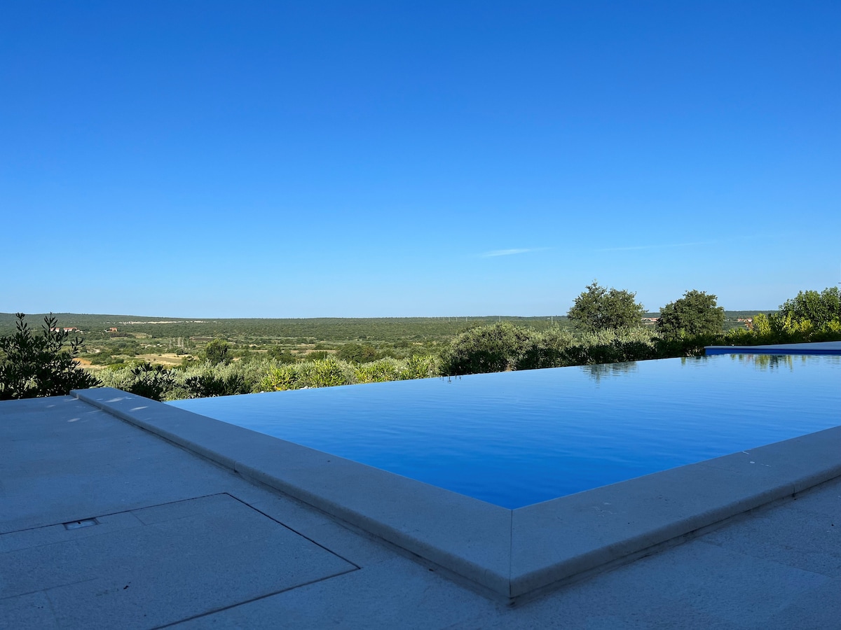 Esta hermosa villa con piscina climatizada, bañera de hidromasaje y sauna se encuentra en un paisaje remoto y aislado con una vista impresionante del valle. Piscina climatizada de abril a noviembre ¡Un lugar ideal para relajarse y un punto de partida para explorar la región y Croacia! Distancia a la ciudad Zadar está a 28 km (aeropuerto a 20 km) de distancia. Šibenik está a 50 km de distancia. Split está a 125 km (aeropuerto a 99 km) de distancia. Distancia a la atracción Lagos de Plitvice a 125 km. Krka a 45 km de distancia Kornati a 30 km de distancia