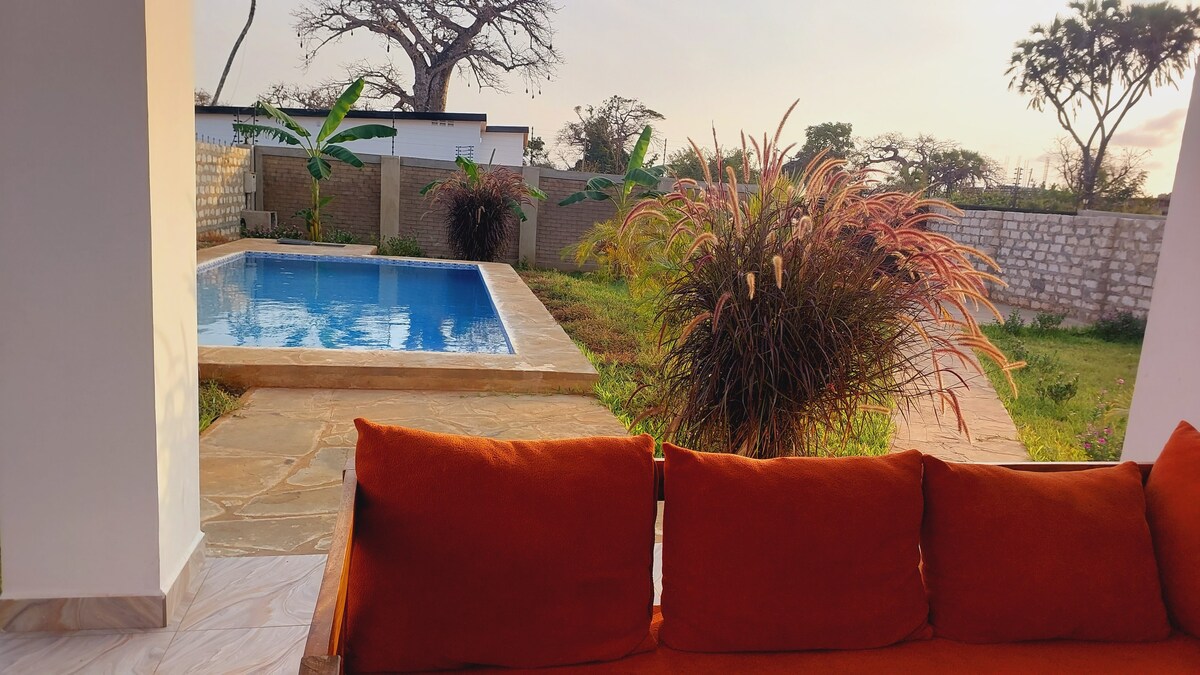 Enjoy a peacefull stay in Kinondo with your family or friends . In a huge and grean garden you find a 10 meters pool which invides you to swim and relax. Just cross the road and book a horse ride at the horse ranch. Take a 10 minutes walk and enjoy the beach or visit Kaya Kinondo Kwetu Forest.
