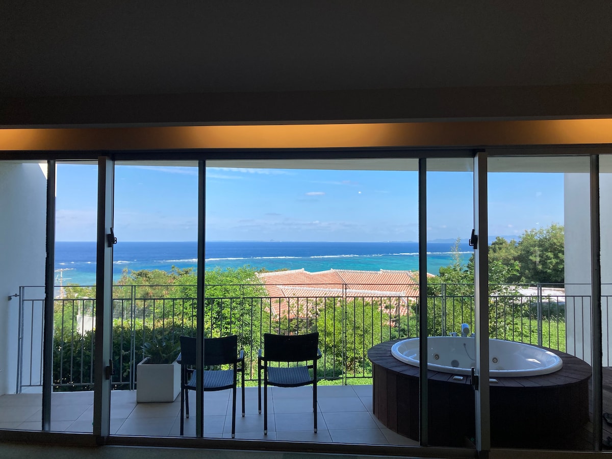 Villa de lujo con piscina y vistas al mar en Sesoko. Alquiler completo. Aparcamiento gratuito. Wifi.