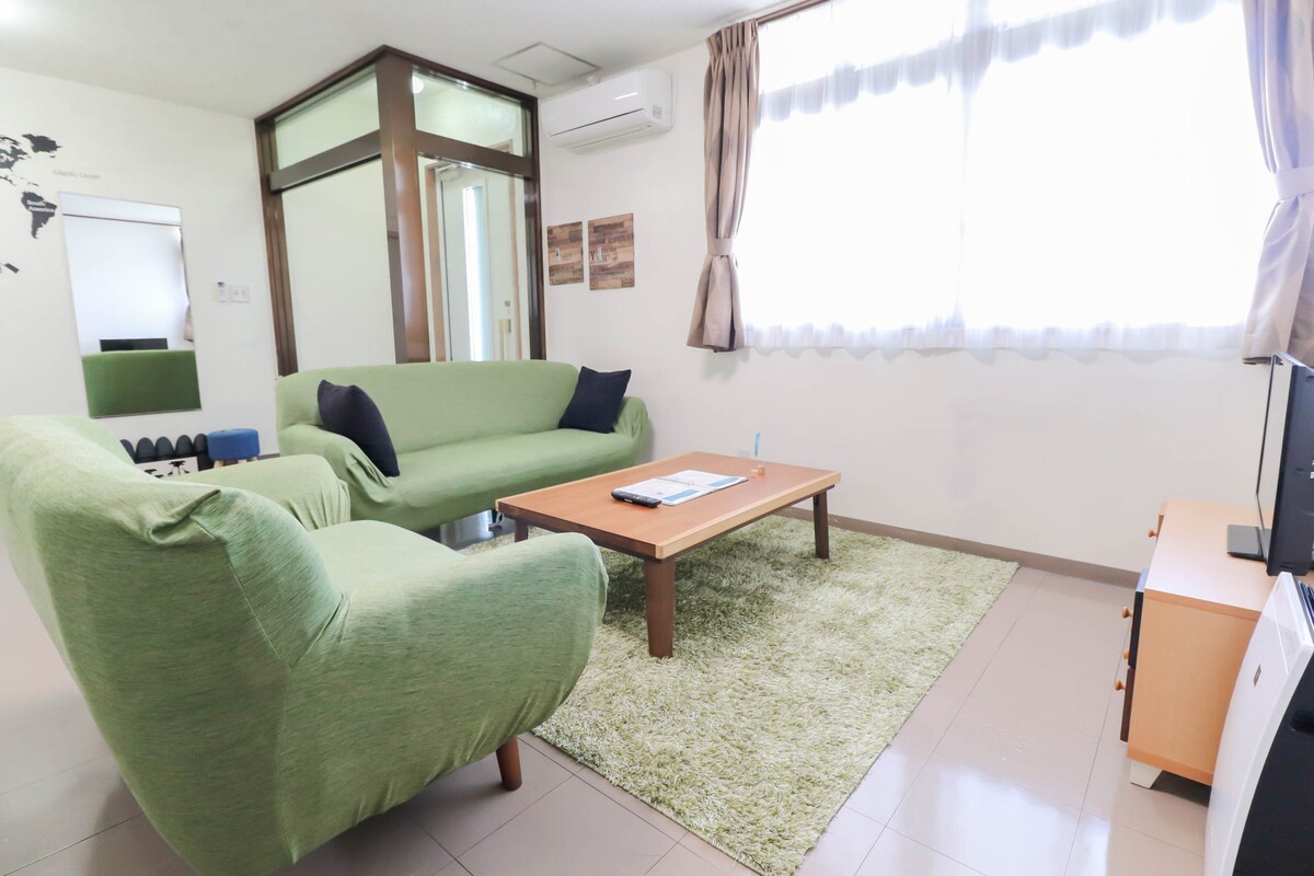 Un espacio verde inspirado en el mar azul y las montañas.Tiene capacidad para 6 personas.Totalmente equipado con artículos de primera necesidad como muebles, electrodomésticos, platos y detergentes.Puedes quedarte cómodamente incluso para una estancia larga.¡Onna Village, Tomigari Beach y Tiger Beach están a 3 minutos a pie!La parada de autobús frente al apartamento tiene un autobús directo al aeropuerto.Puedes acceder al aeropuerto de Naha en autobús sin necesidad de alquilar un auto. También recomendamos ver películas en un espacio con un diseño fotogénico como una pintura, utilizando un proyector de techo.El área de Tomari es un área de resort conveniente con varios hoteles, restaurantes y tiendas de conveniencia, donde puedes hacer actividades a pie.Esperamos que disfrutes de tu estancia en Okinawa en nuestra villa privada estilo condominio.