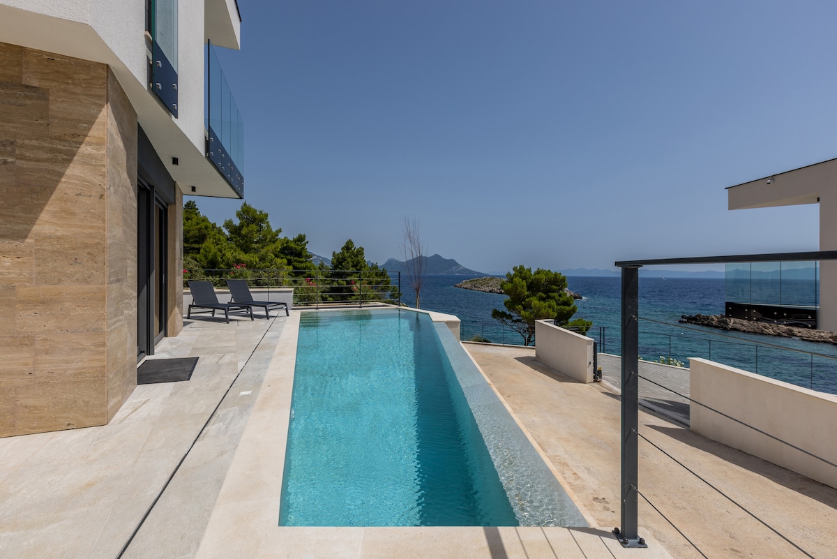 Esta exquisita villa de vacaciones se sitúa en una ubicación impresionante justo en la costa. Con sus extraordinarias vistas al mar azul azul y puestas de sol pintorescas, esta villa ofrece una increíble experiencia de relajación y lujo.