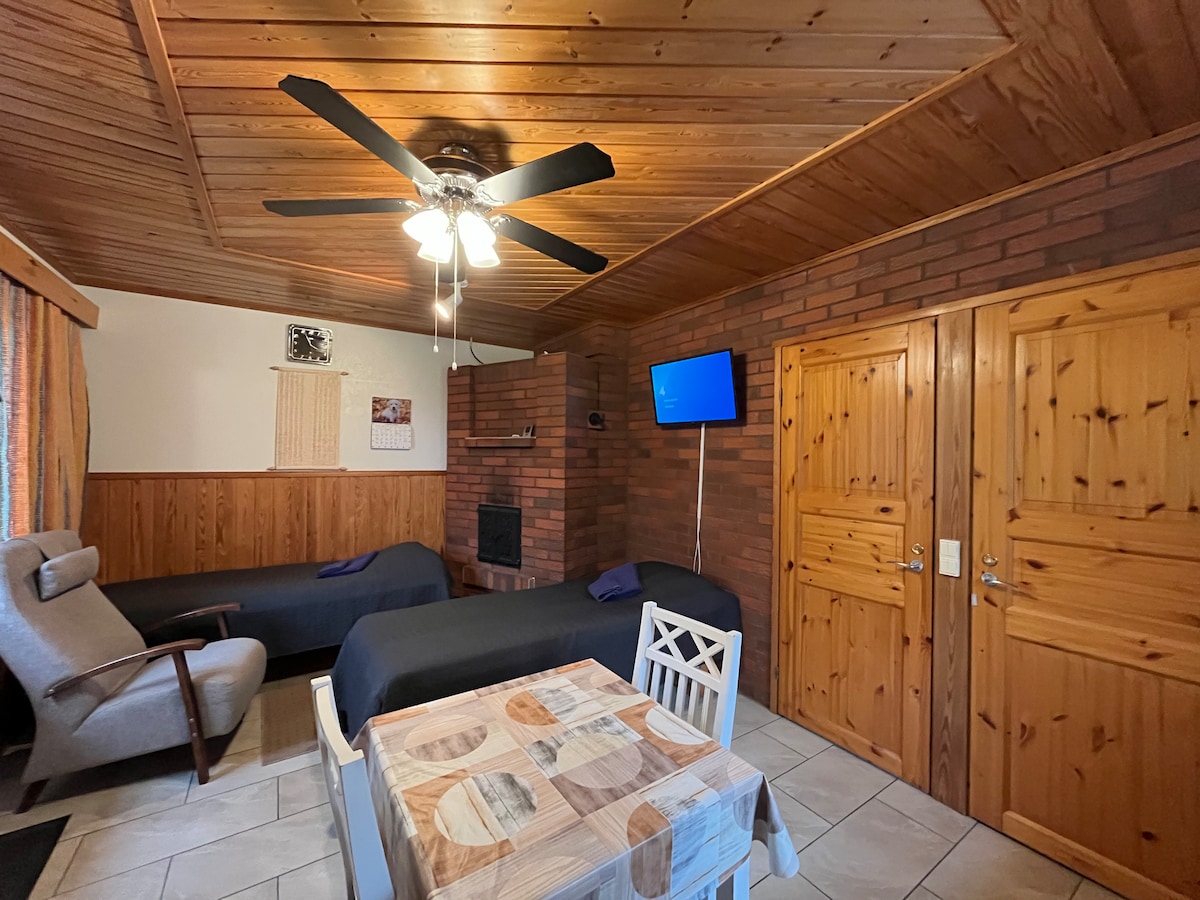 Tule viettämään aurinkoisia kevätpäiviä Sysmään! Omassa rauhassa sijaitseva vanha maatila, jossa modernit mukavuudet! Lähimpään naapuriin 600 m. Kaksi makuuhuonetta ja nukkumapaikat 6+1:lle. Navettarakennuksessa moderni sauna kahdella suihkulla ja Aito -kiukaalla. Terassilla palju (ei käytössä maan tai järven ollessa jäässä). Sisällä erilliset vessa ja suihku. Keittiössä uuni, mikro, astianpesukone, liesi ja jääkaappipakastin. Kellarissa pesukone. Rantaan 600 m, jossa on uimapaikka ja soutuvene.