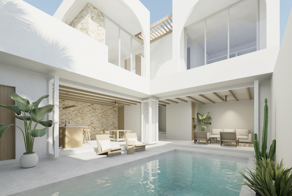 Villa tropical nueva en el corazón de Canggu • 2 elegantes habitaciones con aire acondicionado y vistas a la selva. • Baños en suite con comodidades, pantuflas y secadores de pelo • Amplia piscina rodeada de vegetación para descansar y hacer barbacoas. • Diseño minimalista elegante con cocina abierta y comedor. • Wifi de 300 Mbps para trabajar o transmitir • PS5, Netflix a petición • Cuna y trona bajo petición • Limpieza diaria con toallas y sábanas frescas • Servicio de conserjería para reservas de spa, scooters, clases de surf y más.