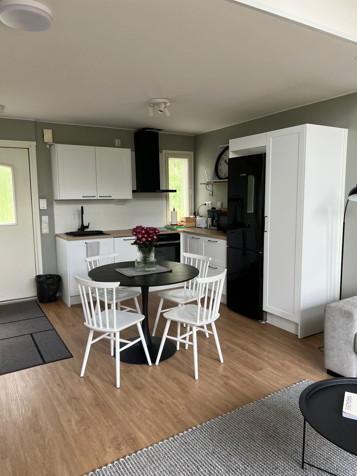 Welcome to enjoy the peace and quiet of nature on the shores of Lake Pitkäjärvi in Velskola, Espoo. This cottage offers the perfect setting for a relaxing holiday – just approx. 35 min drive from the centre of Helsinki and 24 min drive from Helsinki-Vantaa Airport. The main building accommodates four people and the guest cottage can accommodate two additional people. The stunning location by the lake invites you to swim in the clear water, get out in nature or spend your holiday playing golf.