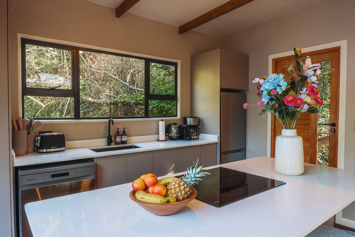 La espaciosa casa de campo independiente cuenta con 2 habitaciones con baño privado y aire acondicionado, con sábanas y toallas de baño de lujo. Los baños, aunque anticuados, están limpios y ordenados. Como parte de nuestro compromiso de ser lo más respetuosos posible con el medioambiente, la ropa de cama se lava pero no se plancha. Nuestra cafetería está equipada con bizcochos caseros, café, té y azúcar. También hay leche en el refrigerador. El salón y el área del patio tienen vistas preciosas al lago Falsebay. La cocina está totalmente equipada. La tarifa indicada es para un máximo de 2 personas; el alojamiento puede alojar hasta 4 personas.