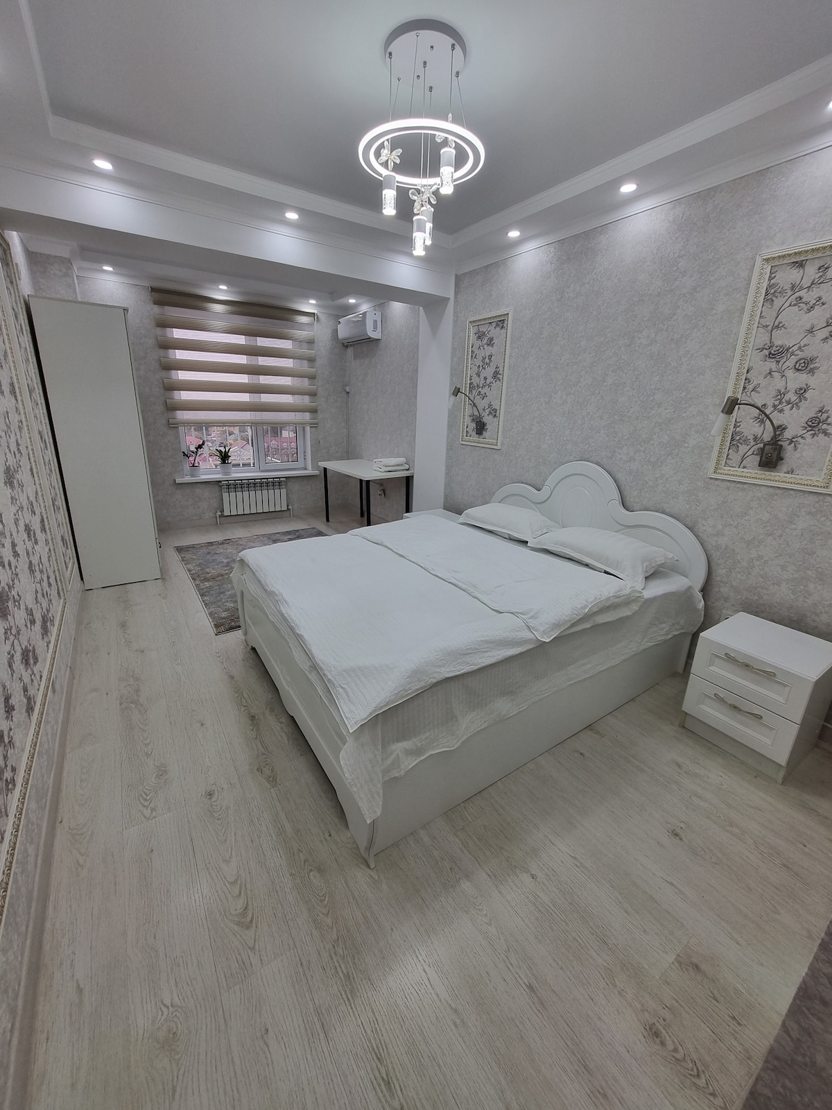 Disfruta de alojarte en un apartamento elegante. Apartamento absolutamente nuevo, luminoso, espacioso en un nuevo complejo residencial con una nueva renovación. Acogedor dormitorio con una cama grande (180*200) con un colchón ortopédico. Cocina-sala de estar con todo lo necesario para una estancia cómoda. Las ventanas ofrecen una hermosa vista de la ciudad y las hermosas montañas. Zona para caminar a lo largo de toda la zona con parques, tiendas,bares, clubes nocturnos, restaurantes y cafeterías. A 10 minutos a pie de la plaza central Ala-too.