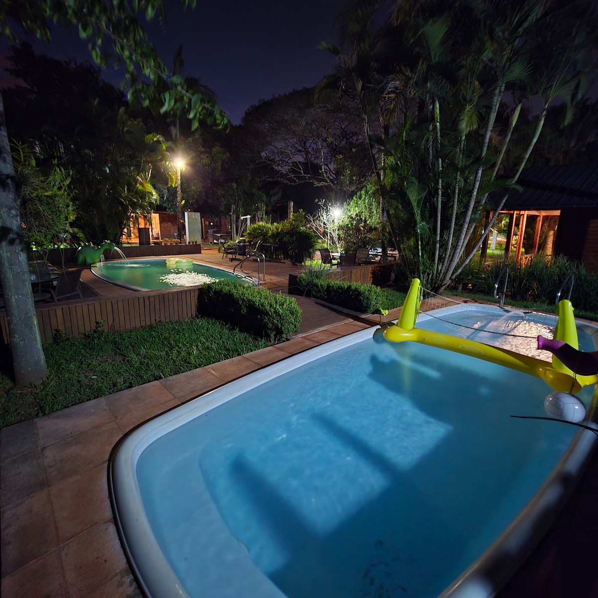 Soy Natalia y, junto a mi equipo, nos encargamos de cada detalle para que tu estadía sea cómoda, segura y completamente relajante. Sumergite en las piscinas, descansá en el amplio parque, disfrutá del aire libre o prepará tus comidas en la cocina completa de la cabaña. Perfecto para desconectar, leer, relajarte o simplemente conectar con la naturaleza que rodea nuestras cabañas. Tu refugio en Iguazú te espera!