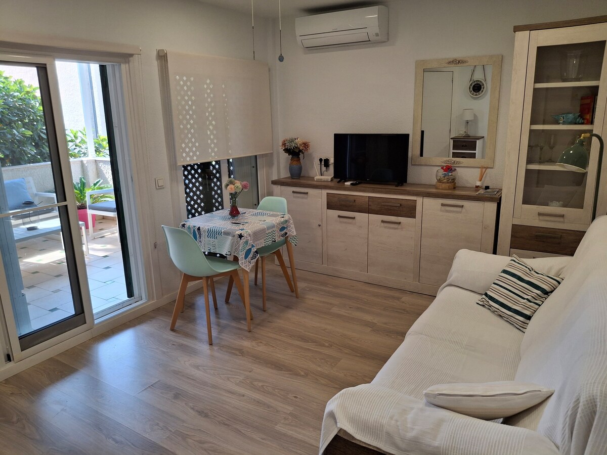 Stylish Pet Friendly 1 Double bedroom apartment with balconies .Light and airy space with WIFI, Smart TV and Fully functional kitchen. Large private use solarium with sea and mountain views, sunbeds. Use of communal pool. Local bars, beaches, dog friendly beach approximately 600 meters away. Nestled in a typical Spanish seaside pueblo. Paseo Maritime de Puerto de Mazarron within walking distance. Summer season Water-sports available, beach bar. Historic town of Cartagena is 50min drive away.