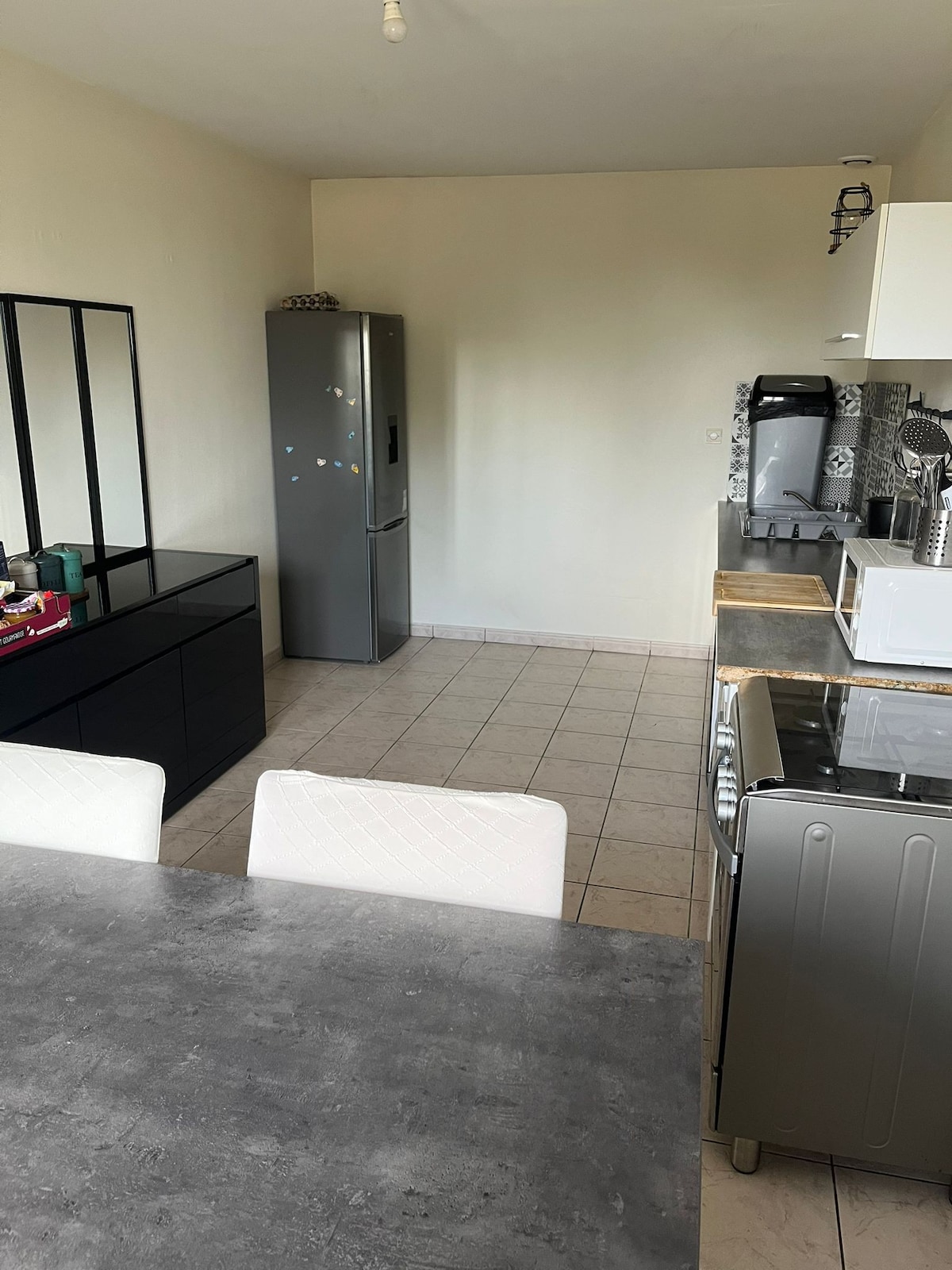 Encantador alojamiento situado en el centro, cerca de "du Laval Historique " y cerca de bares/restaurantes, supermercado (plaza de la Trémoille). Se puede hacer todo a pie. El apartamento tiene un gran dormitorio con espacio de trabajo (oficina), amplio vestidor y baño. Una cocina equipada, placa de gas, horno, microondas, nevera, lavadora. Una máquina de café espresso (monodosis incluida), tostadora y hervidor de agua están disponibles. Un sofá cama disponible en la sala de estar.