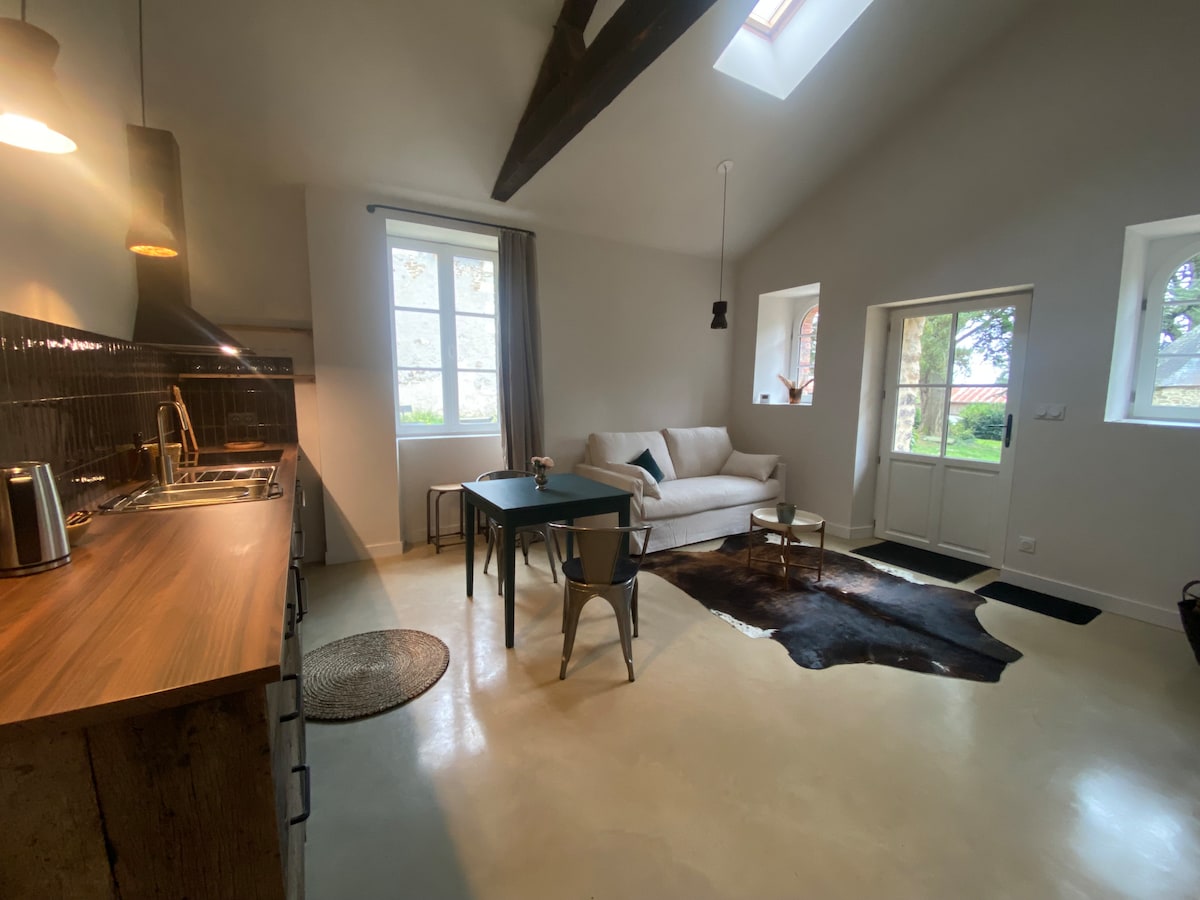 Logement entier situé dans un environnement calme entre Nantes et Angers à 3min du péage. Idéal pour couples, voyageurs d'affaires, familles, ou amis. Décoré avec soins et ultra équipé, il vous apportera tout le confort nécessaire pendant votre séjour: parking, wifi, TV avec applications, cuisine équipée, espace de travail, penderie, lave-linge, fer à repasser, sèche-cheveux, literie et linge de maison de qualité. Terrasse et jardin privatifs. Arrivée dès 16h sur site - Départ à 11h