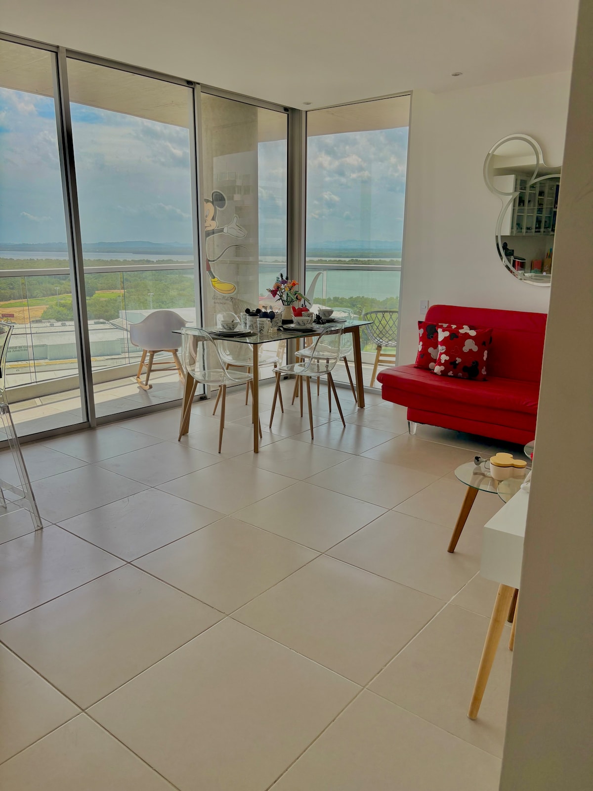 Apartamento moderno para disfrutar de bellos atardeceres y una magnifica vista al Mar, el condominio cuenta con una maravillosa piscina con hermosas vistas panorámicas lo cual es un lujo, y un jacuzzi para ver los atardeceres desde la piscina y gimnasio, es ideal para compartir con familia y amigos. Situado frente al Hotel Las Americas a tan solo 250 metros de playa y a 5 minutos del centro histórico, cercano al aeropuerto con vías de acceso. A pocos metros un express market y restaurantes.